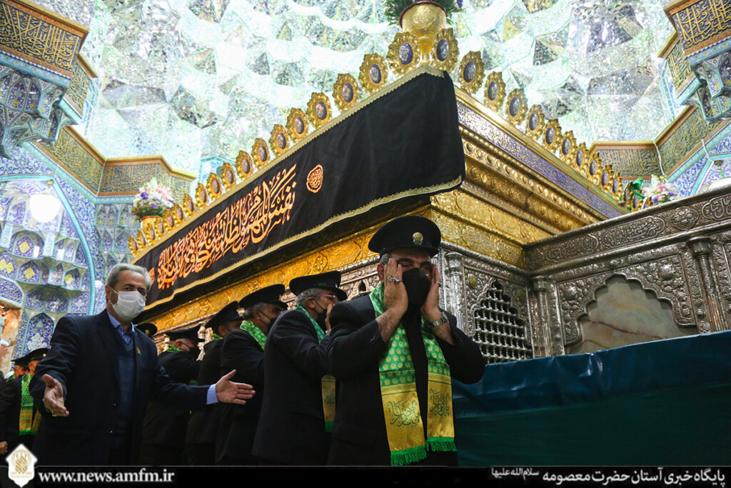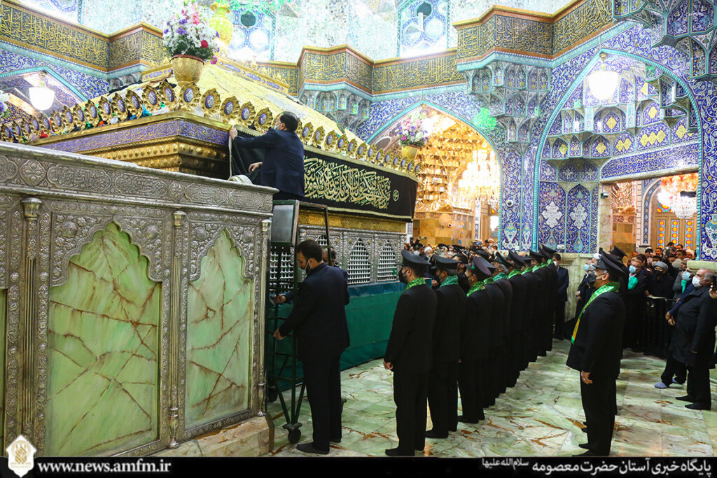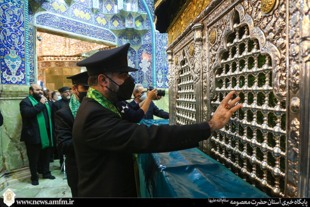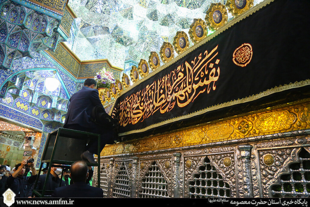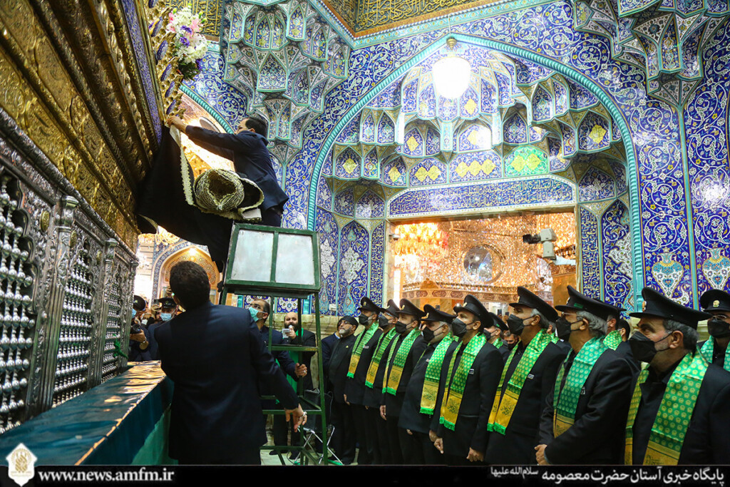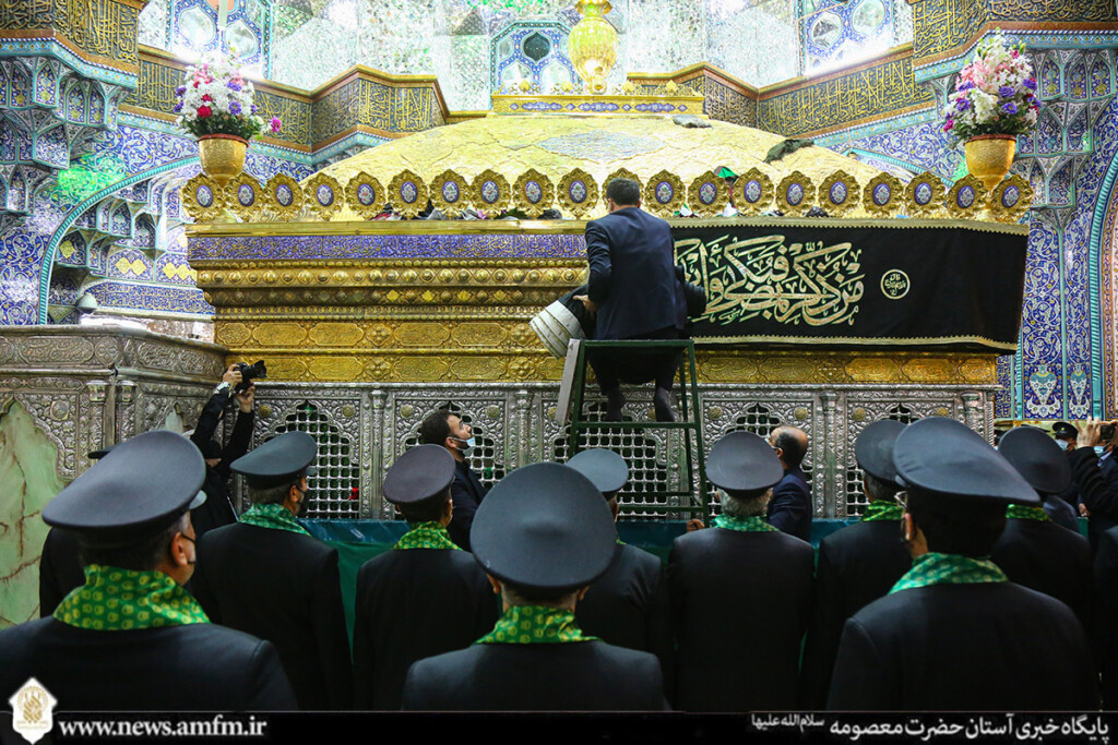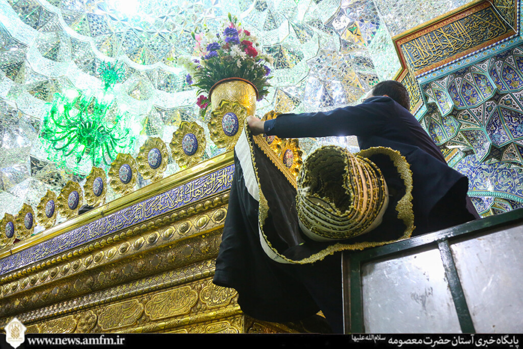 به گزارش پایگاه خبری آستان مقدس حضرت فاطمه معصومه سلامالله علیها، خادمان حرم مطهر کریمه اهلبیت(س) امروز با برگزاری مراسمی ضریح این آستان مقدس را سیاهپوش کردند.