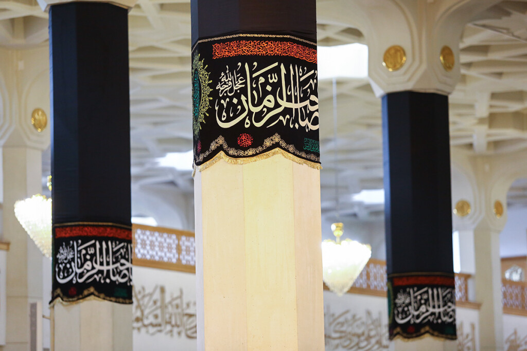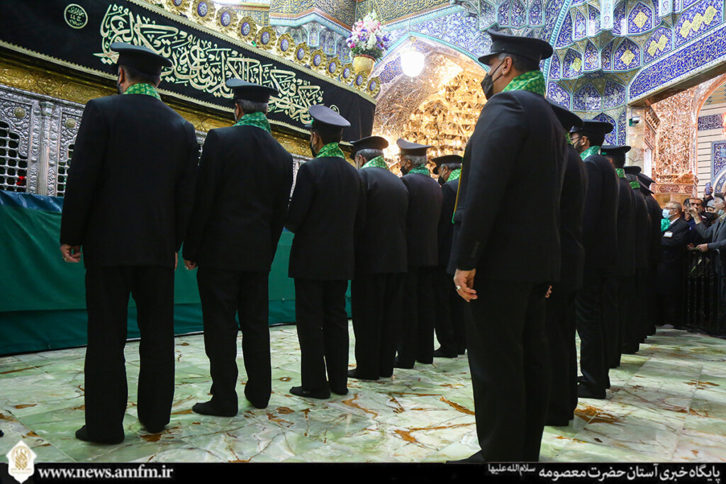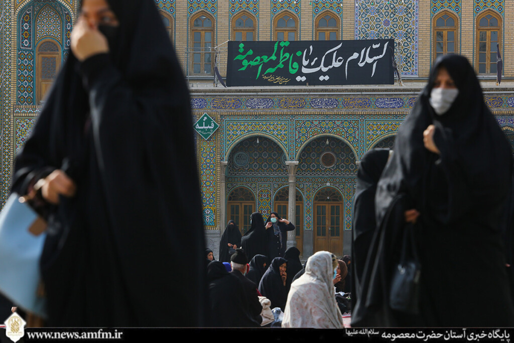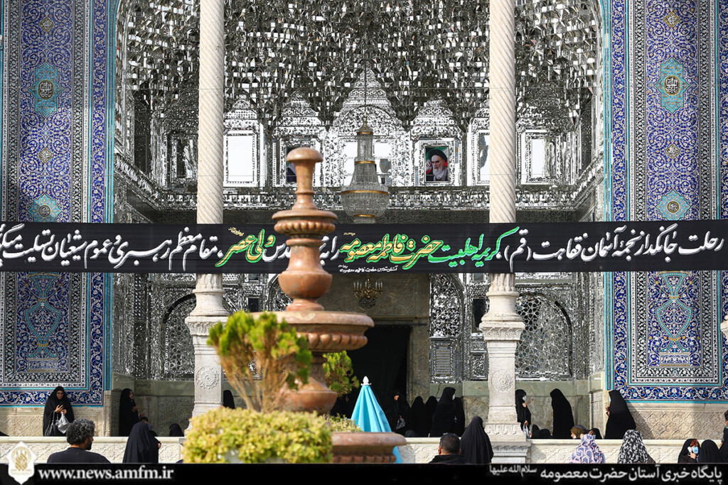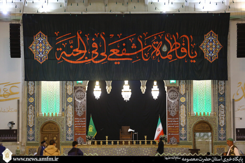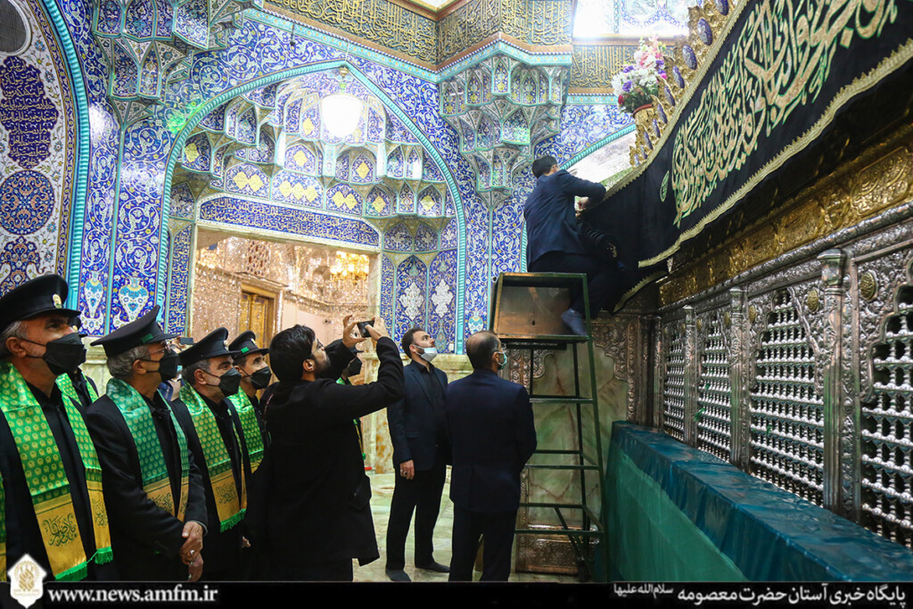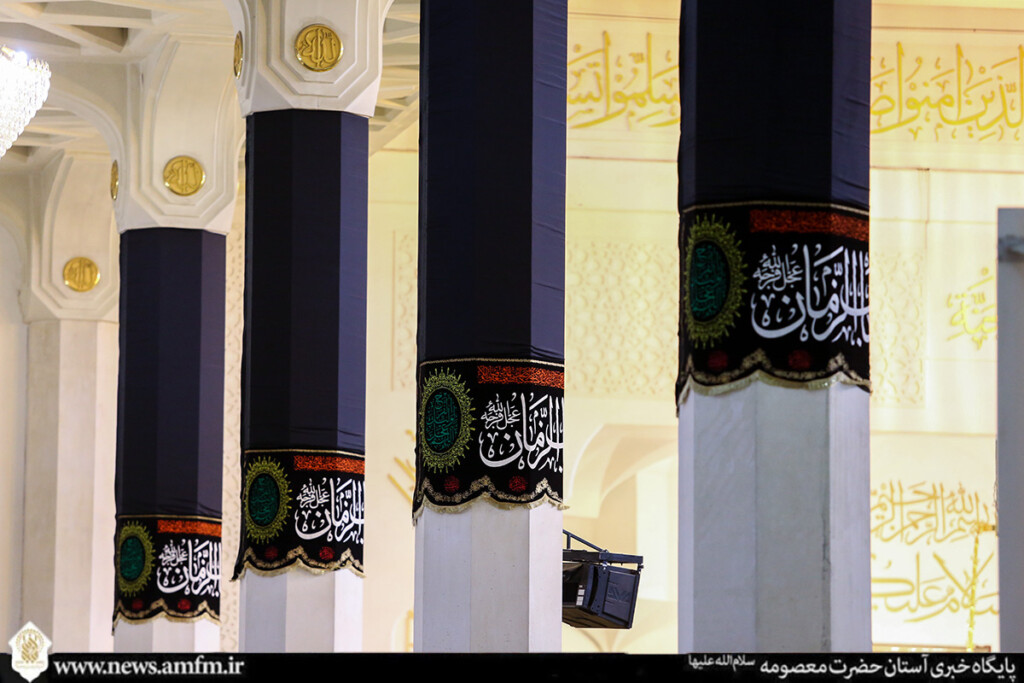 امروز خادمان واحد تبلیغات و فضاسازی حرم مطهر بانوی کرامت در صحنها، شبستانها و اطراف حرم مطهر درحال سیاهپوش کردن محیط هستند.