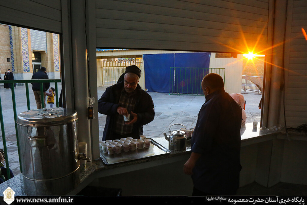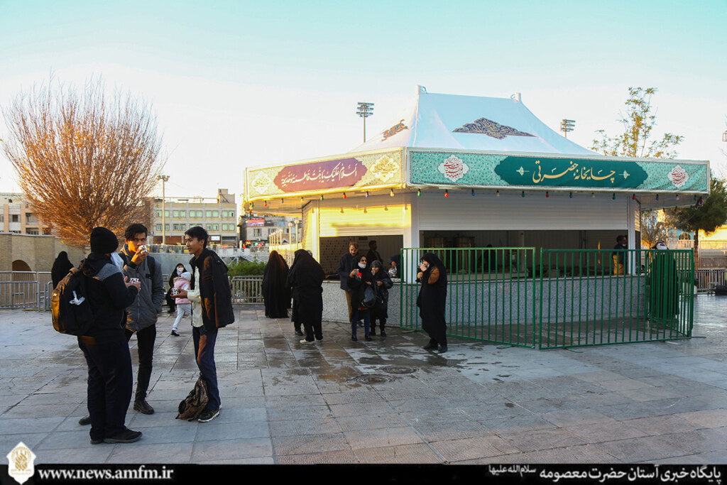 این چایخانه به صورت دائمی همه روزه از یک ساعت قبل تا دو ساعت بعد از اذان مغرب و در ایام مناسبتی اعیاد و وفات اهلبیت(ع) نیز از صبح تا شب به صورت یکسره به زائران حرم مطهر بانوی کرامت خدمترسانی خواهد داشت.