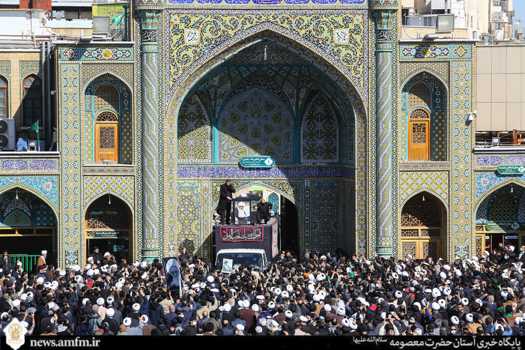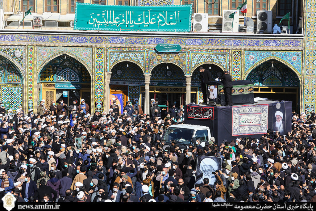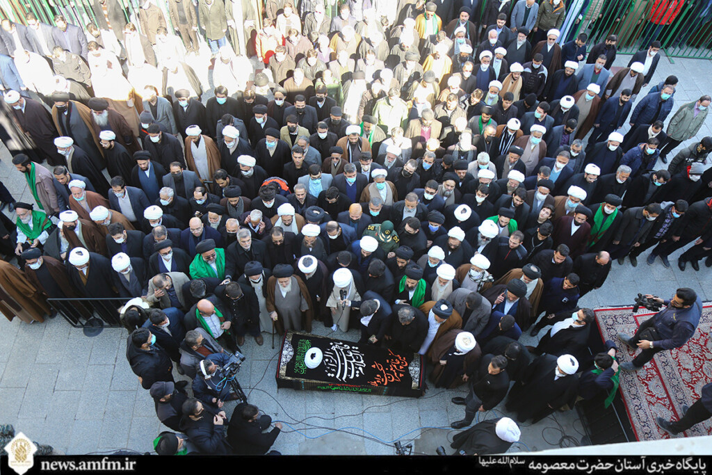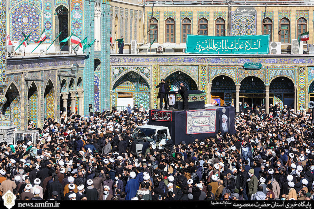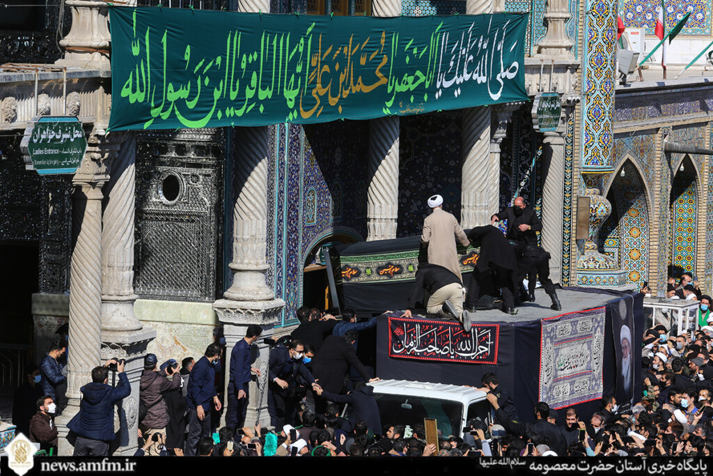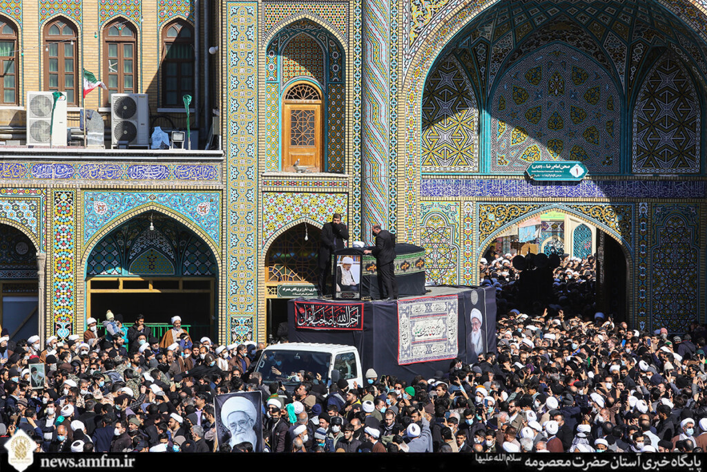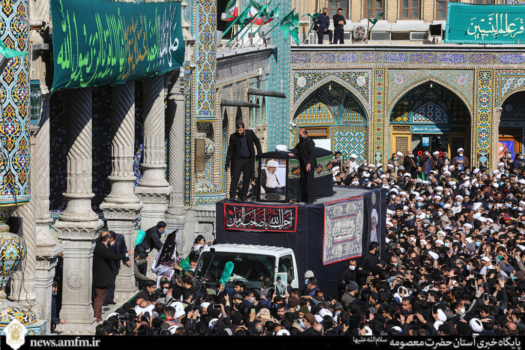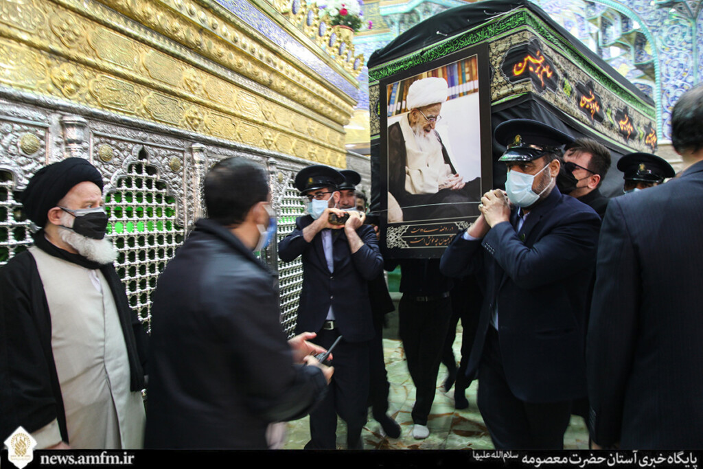 پیکر آیتالله لطفالله صافی گلپایگانی امروز از میدان جهاد به سمت حرم مطهر کریمه اهلبیت(س) تشییع و سپس اقامه نماز بر پیکر وی در صحن امام رضا(ع) انجام و پیکر این عالم ربانی توسط خادمان حرم و در اطراف مضجع شریف بانوی کرامت طواف داده شد.