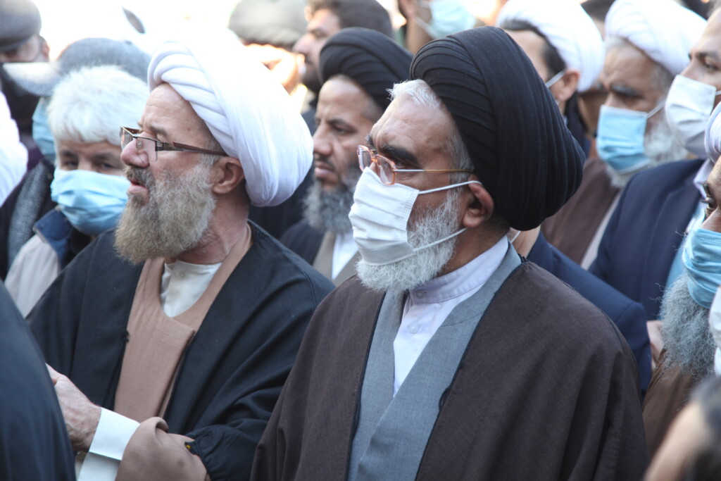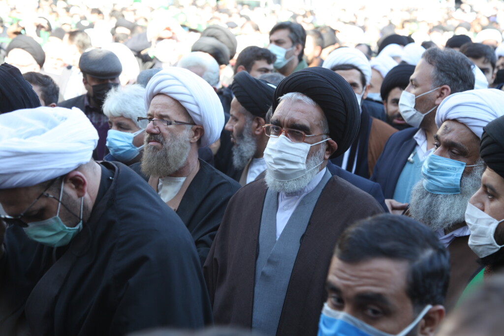 طواف و اقامه نماز بر پیکر آیتالله صافی گلپایگانی در حرم حضرت معصومه(س)