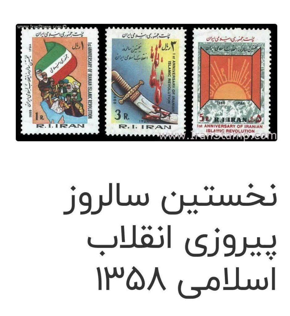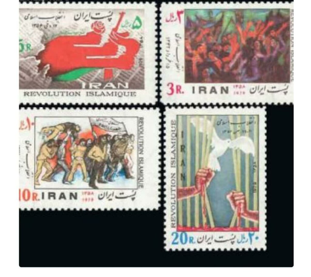پیروزی انقلاب اسلامی به یکباره نقش و طرح تمبرها را دگرگون کرد. بر نقش تمبرهای این دوره، بر خلاف دورۀ پیش، حضور مردم و موضوعات مذهبی بسیار پررنگ شد. نخستین سری رسمی تمبرهای جمهوری اسلامی در ۳۱ فروردین ۱۳۵۸ در ۳ طرح مختلف از تظاهرات مردم پیش از انقلاب و یک طرح نمادی از رهایی پس از پیروزی به چاپ رسید.