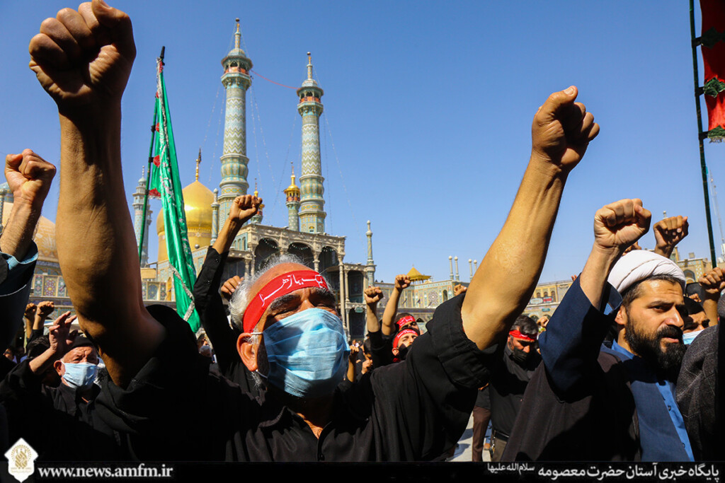 مردم و زائران شهر مقدس قم همزمان با ظهر شهادت امام حسن عسکری علیه السلام در حرم مطهر حضرت فاطمه معصومه سلام الله علیها به سوگواری میپردازند.