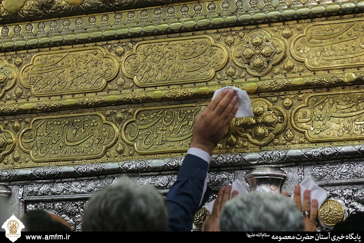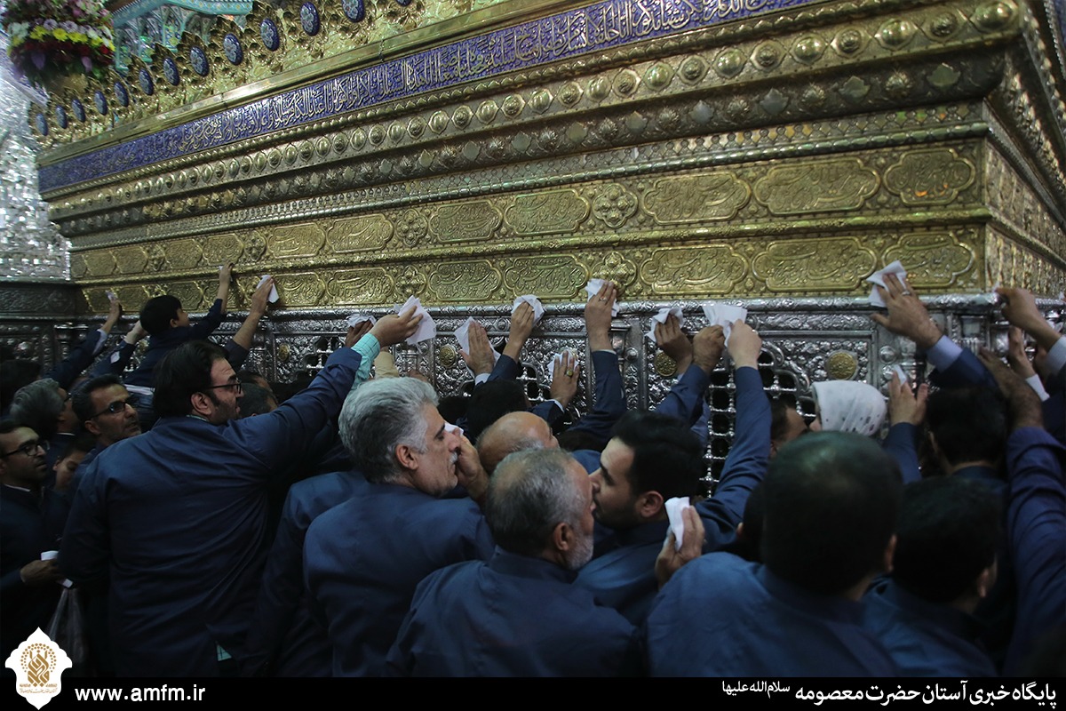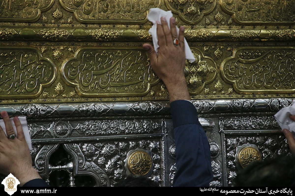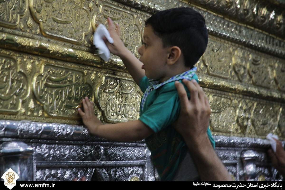 غباروبی مضجع شریف کریمه اهل بیت توسط مدیران روابط عمومی قم