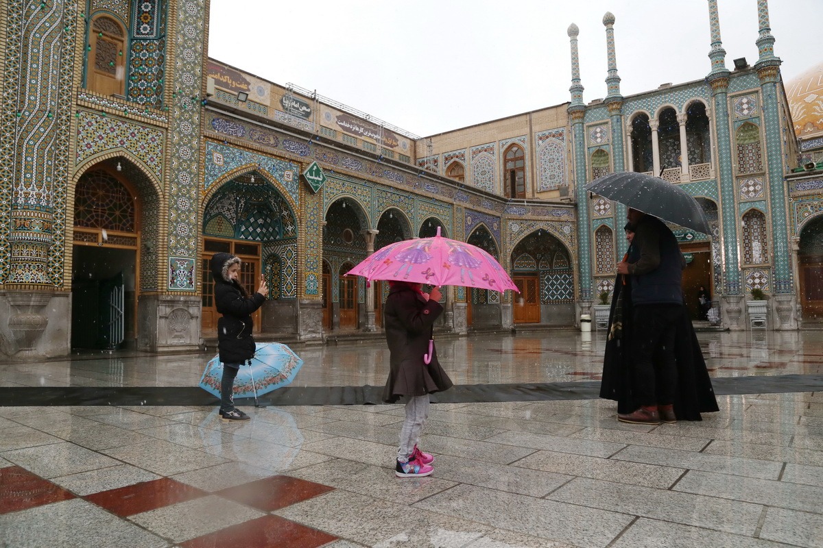 نخستین برف زمستانی در حرم حضرت معصومه(س)