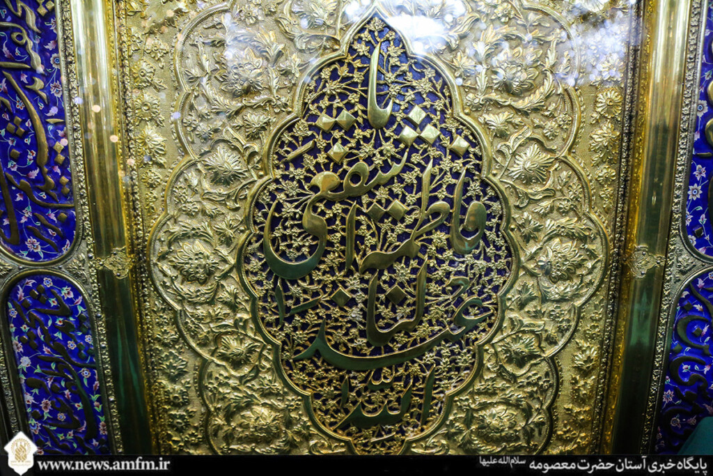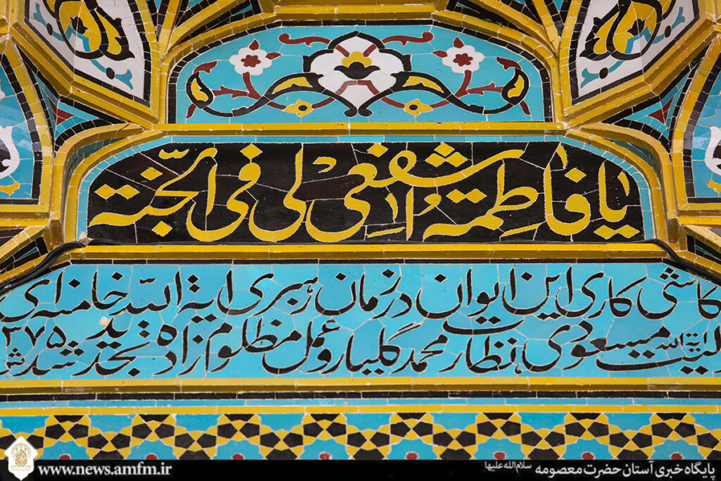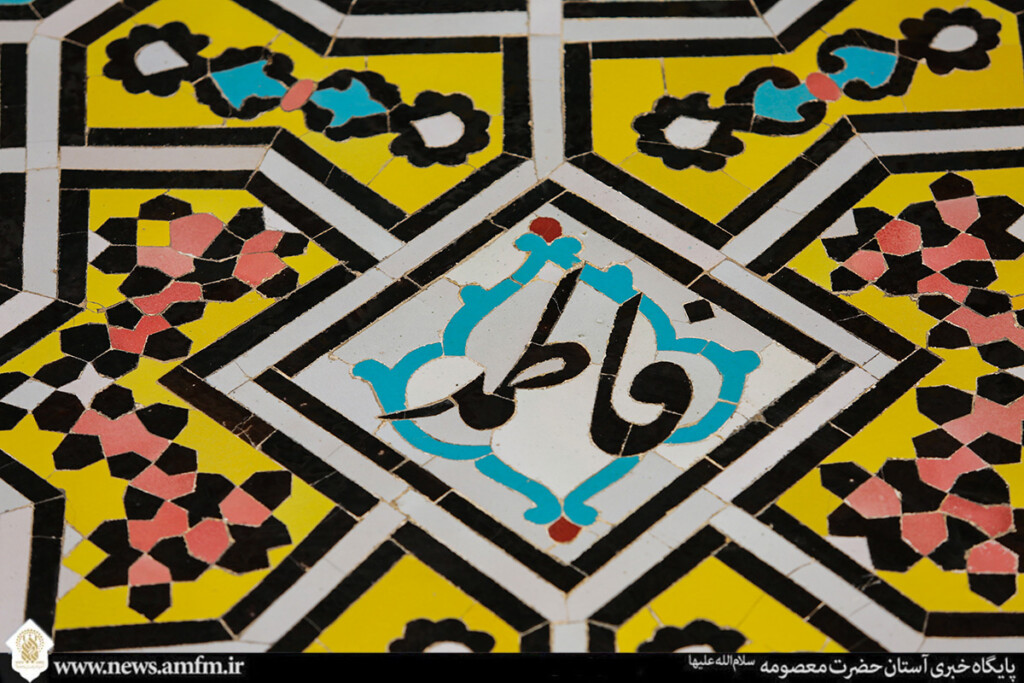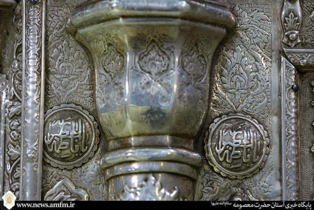 نامهای زیبای حضرت فاطمه معصومه سلامالله علیها در قالبهای کاشیکاری و قلمکاری بر در، دیوار و ضریح مطهر نقش بسته و به زیباییهای حرم بانوی کرامت افزوده است.