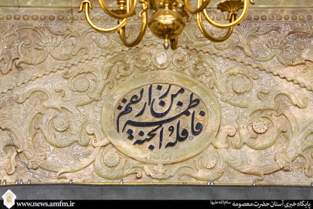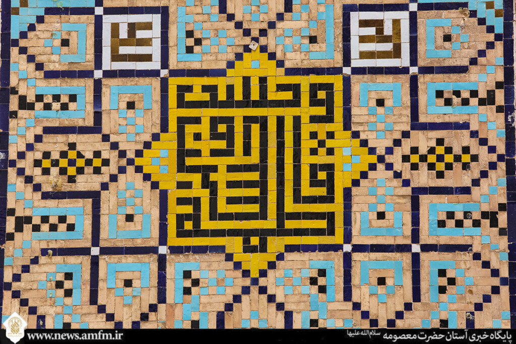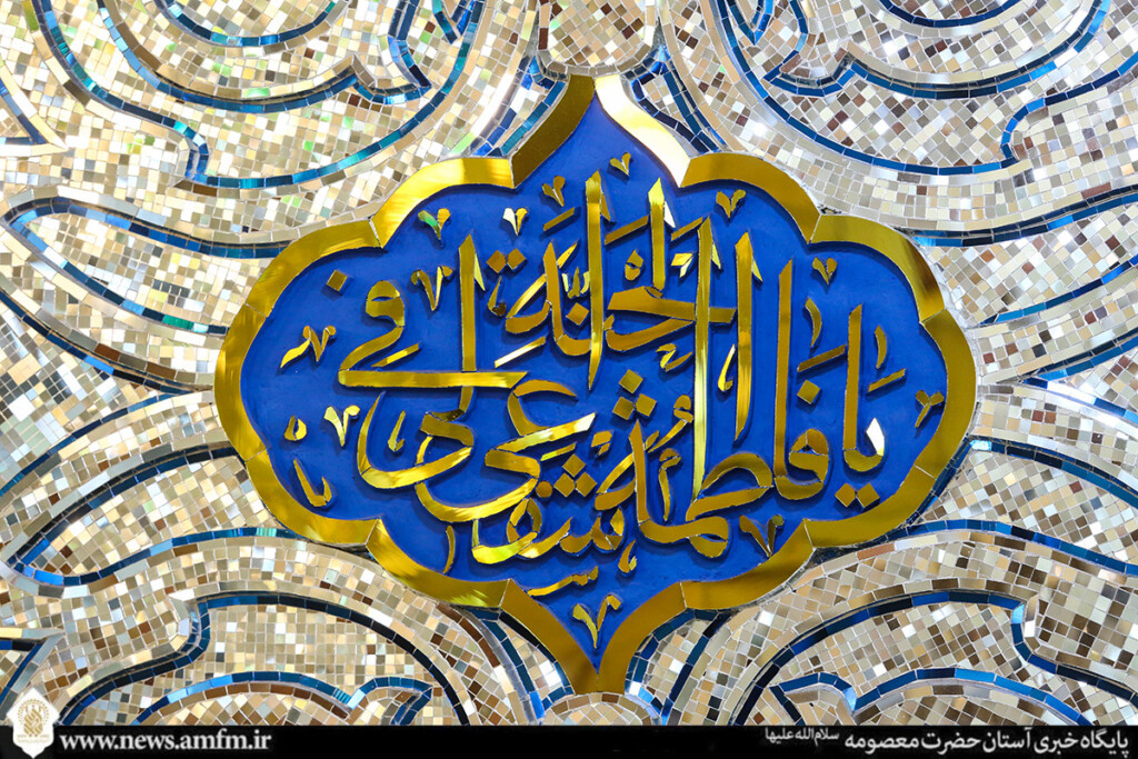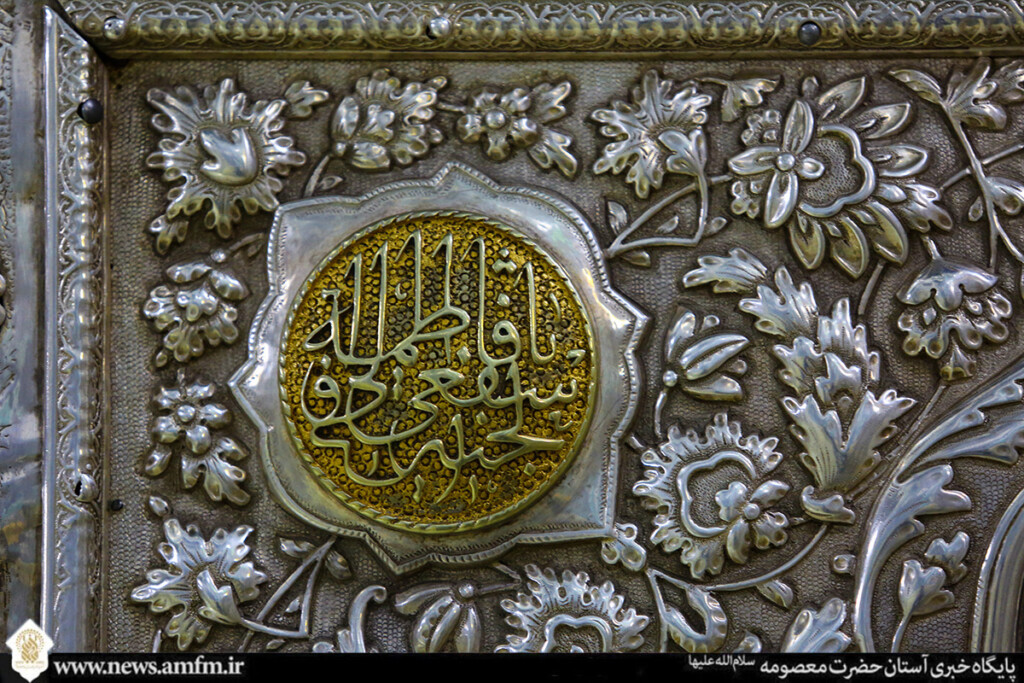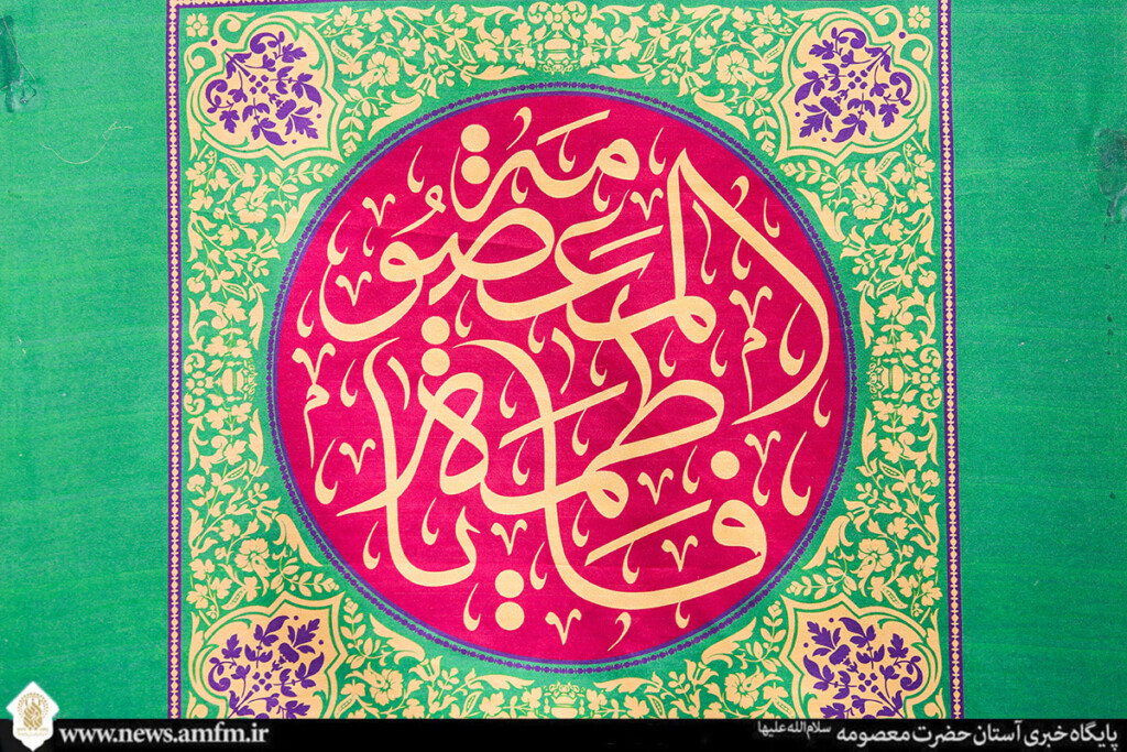 نامهای زیبای حضرت فاطمه معصومه سلامالله علیها در قالبهای کاشیکاری و قلمکاری بر در، دیوار و ضریح مطهر نقش بسته و به زیباییهای حرم بانوی کرامت افزوده است.