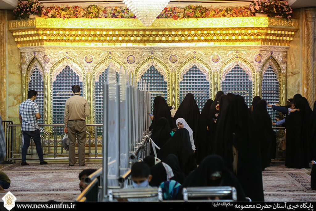 ضریح حرم حضرت معصومه(س) به مناسبت میلاد امام رضا(ع) گل‌آرایی شد
