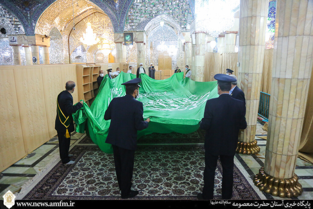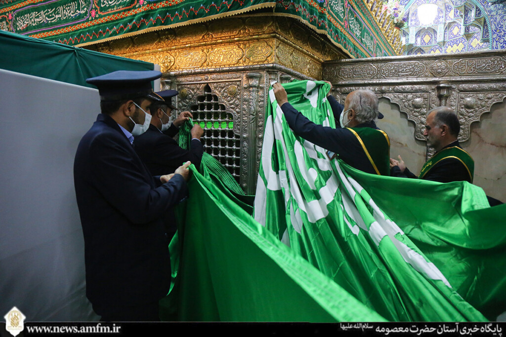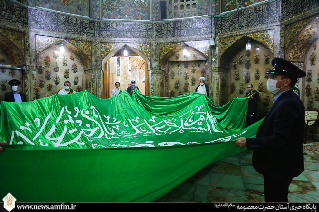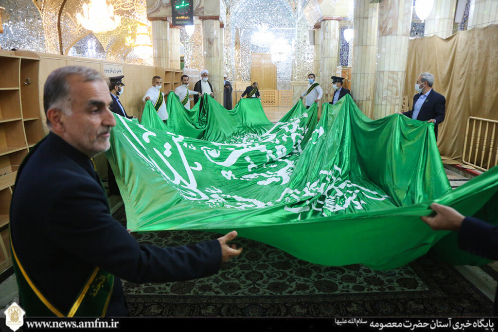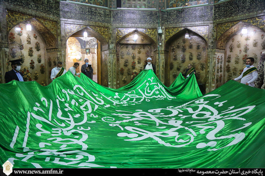 به گزارش پایگاه خبری آستان مقدس حضرت معصومه سلامالله علیها، پرچم بزرگ مزین به نام حضرت فاطمه معصومه سلام الله علیها صبح امروز از شهر آمل استان مازندران توسط خادمان افتخاری این حرم شریف در استان مازندران به حرم مطهر حضرت معصومه سلام الله علیها منتقل و توسط خادمان حرم مطهر با ضریح مطهر این حضرت متبرک شد.