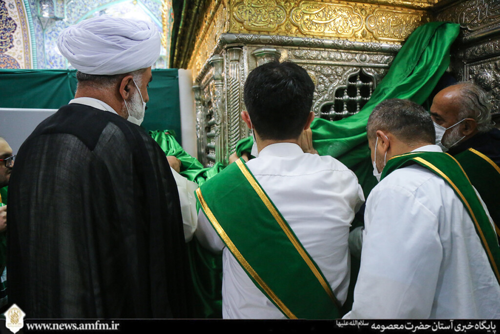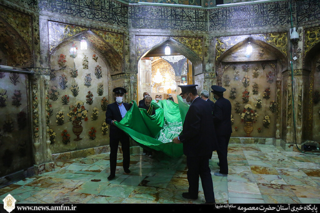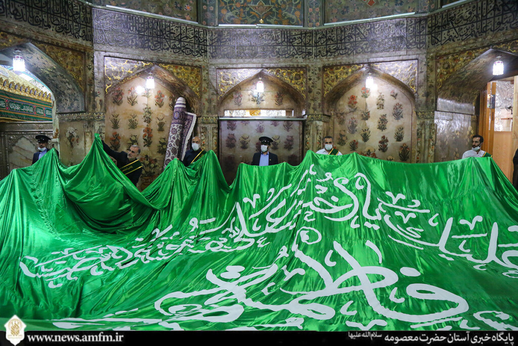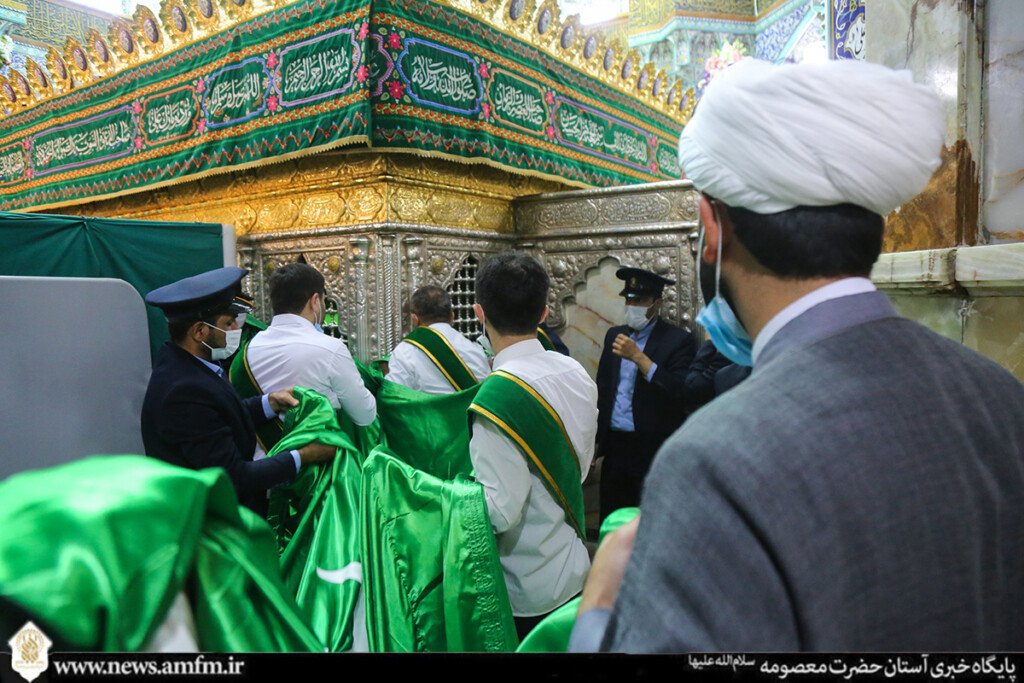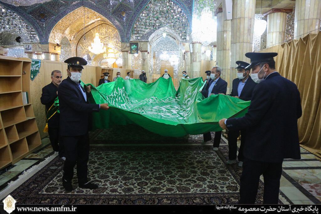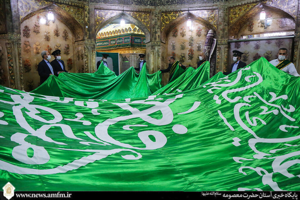 به گزارش پایگاه خبری آستان مقدس حضرت معصومه سلامالله علیها، پرچم بزرگ مزین به نام حضرت فاطمه معصومه سلام الله علیها صبح امروز از شهر آمل استان مازندران توسط خادمان افتخاری این حرم شریف در استان مازندران به حرم مطهر حضرت معصومه سلام الله علیها منتقل و توسط خادمان حرم مطهر با ضریح مطهر این حضرت متبرک شد.