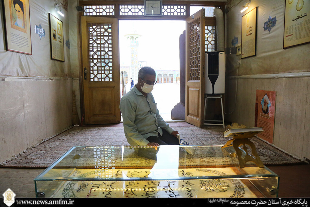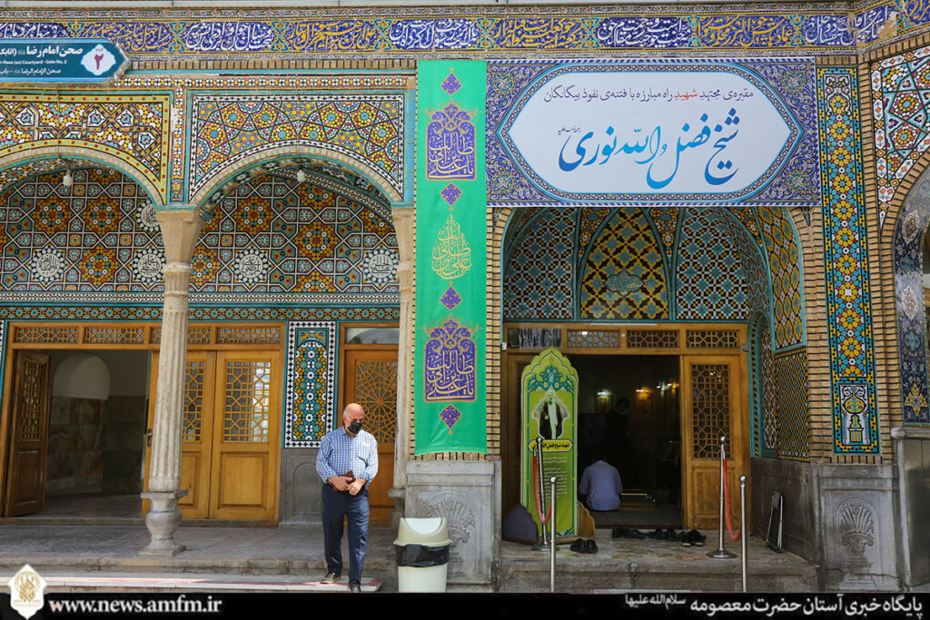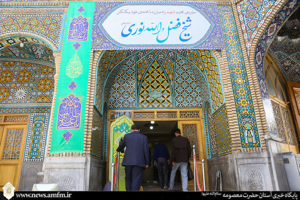 مقبره شهید شیخ فضلالله نوری در حرم مطهر بانوی کرامت با رعایت شیوه نامههای بهداشتی میزبان زائران و مجاوران حرم است.