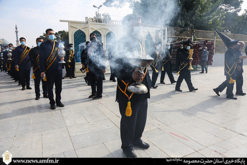 به گزارش پایگاه خبری آستان حضرت معصومه سلام‌الله علیها، صبح امروز به مناسبت سالروز شهادت امام رضا علیه‌السلام خادمان حرم مطهر در مسجد امام حسن عسکری علیه‌السلام گردهم آمده و بعد از برگزاری مراسم عزاداری و روضه‌خوانی به سمت حرم مطهر کریمه اهل‌بیت(س) حرکت کردند.
