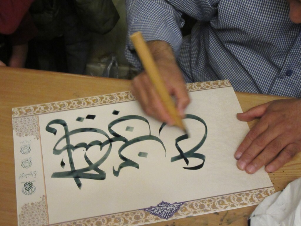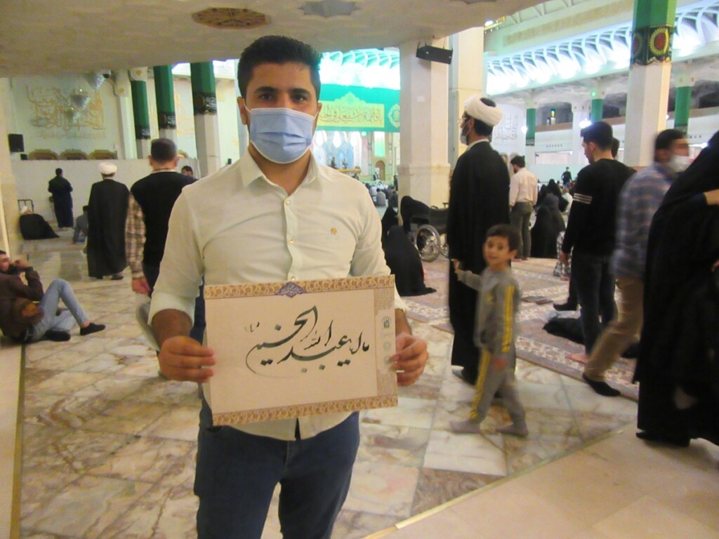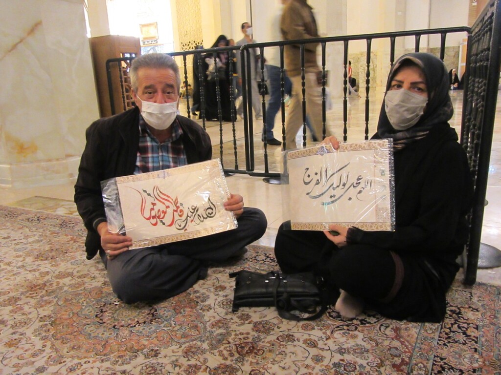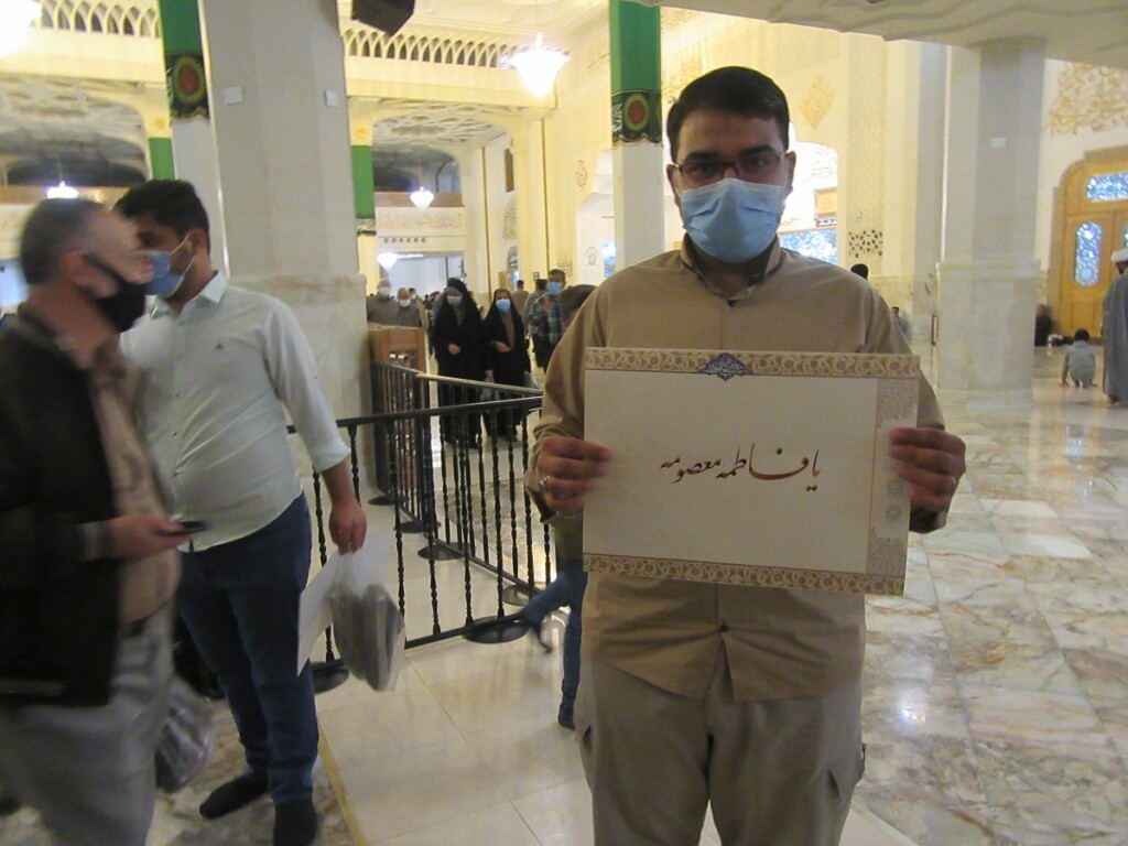 گفتنی است در این میز خوشنویسی اسامی و القاب حضرت معصومه سلام الله علیها و سایر اهل بیت عصمت و طهارت(ع) به سفارش زائران برای آنها نوشته و به آنها تقدیم شد.