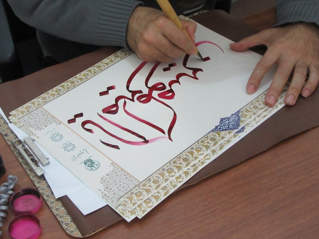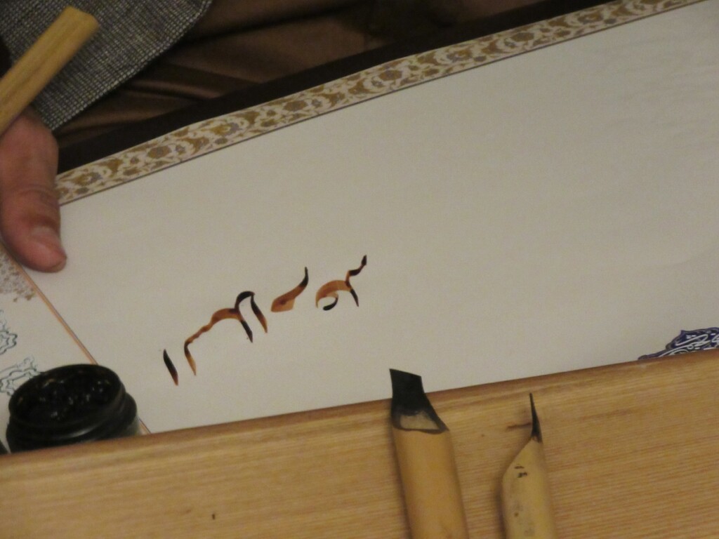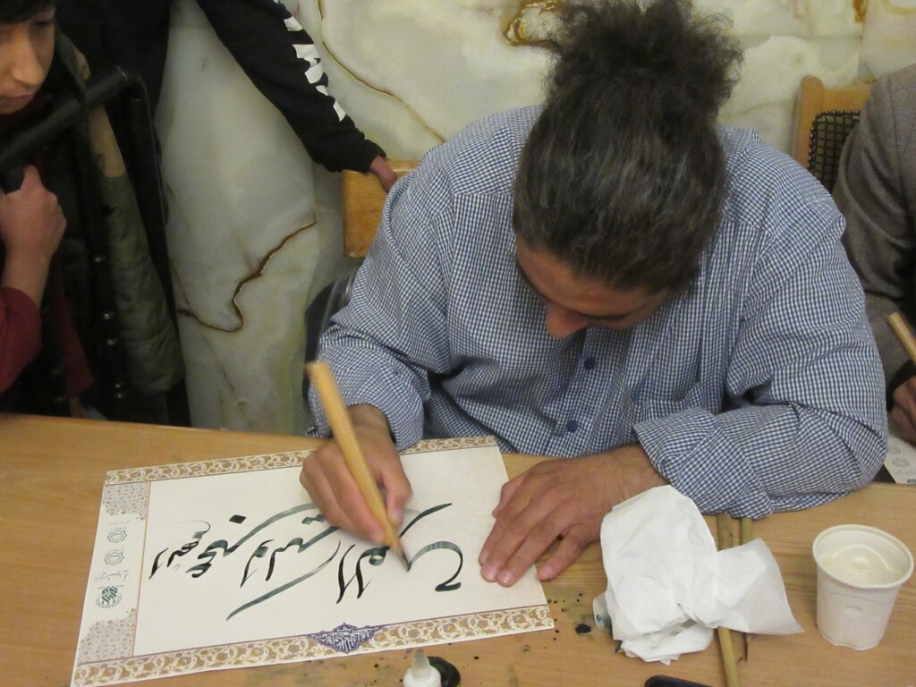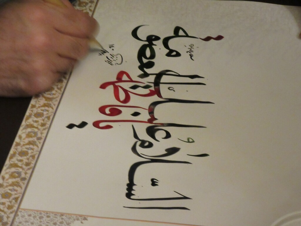 گفتنی است در این میز خوشنویسی اسامی و القاب حضرت معصومه سلام الله علیها و سایر اهل بیت عصمت و طهارت(ع) به سفارش زائران برای آنها نوشته و به آنها تقدیم شد.