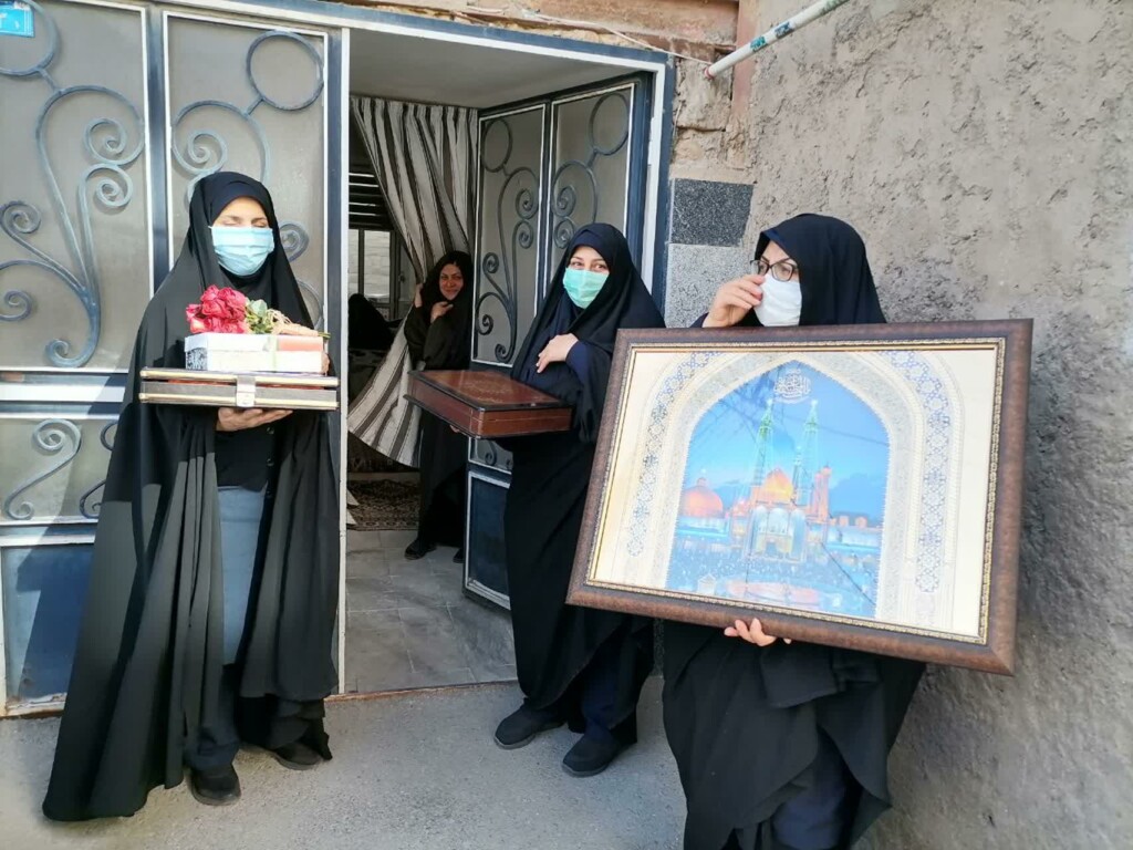 اهدای گل و لوح تقدیر و همچنین اهدای متبرکات و پرچم متبرک آستان مقدس بانوی کرامت از جمله برنامههایی بود که در مراسم بازدید از منازل این خدام انجام شد.