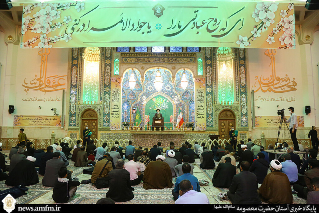جشن میلاد امام جواد علیه السلام با سخنرانی آیتالله سید رحیم توکل و مداحی سید رضا نریمانی همراه با نقارهزنی خادمان در حرم مطهر حضرت فاطمه معصومه سلام الله علیها برگزار شد.