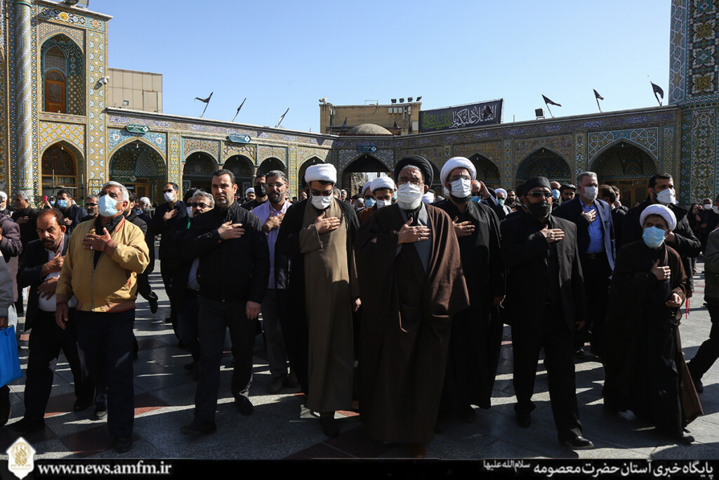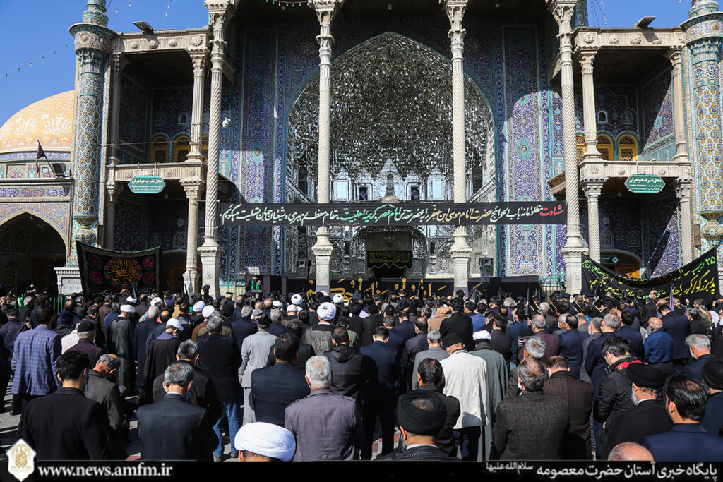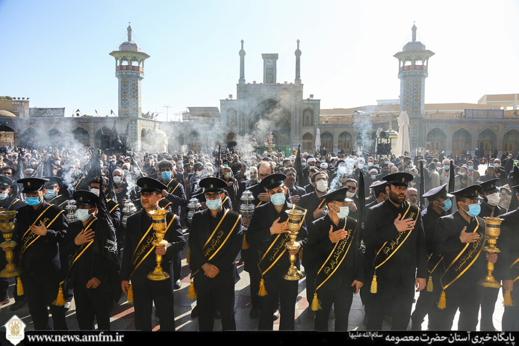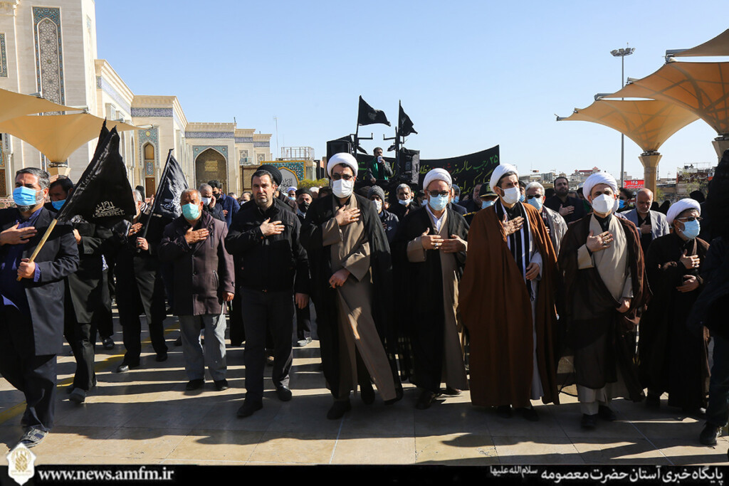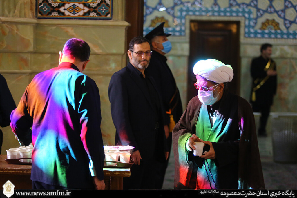 این مراسم با مداحی سیدعلی حسینی نژاد در صحن امام رضا علیه السلام و نوحه خوانی و سینه زنی عزاداران در رثای امام کاظم علیه السلام و عرض تسلیت خدمت حضرت معصومه سلام الله علیها به پایان رسید.