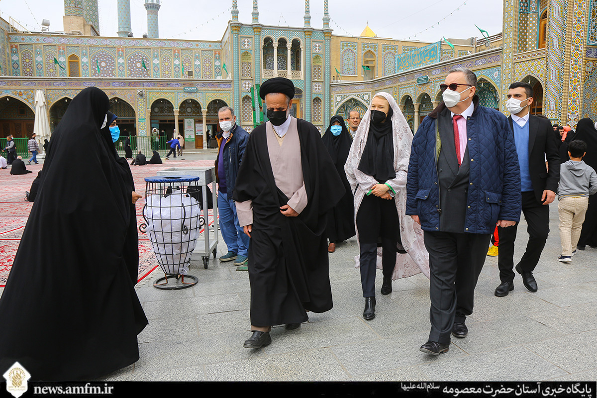 این هیأت بینالمللی شامل کارکنان سفارت فنلاند در ایران و جمعی از همراهان این افراد بود که در قالب برنامه حرم شناسی از ابنیه حرم مطهر بانوی کرامت بازدید کردند.