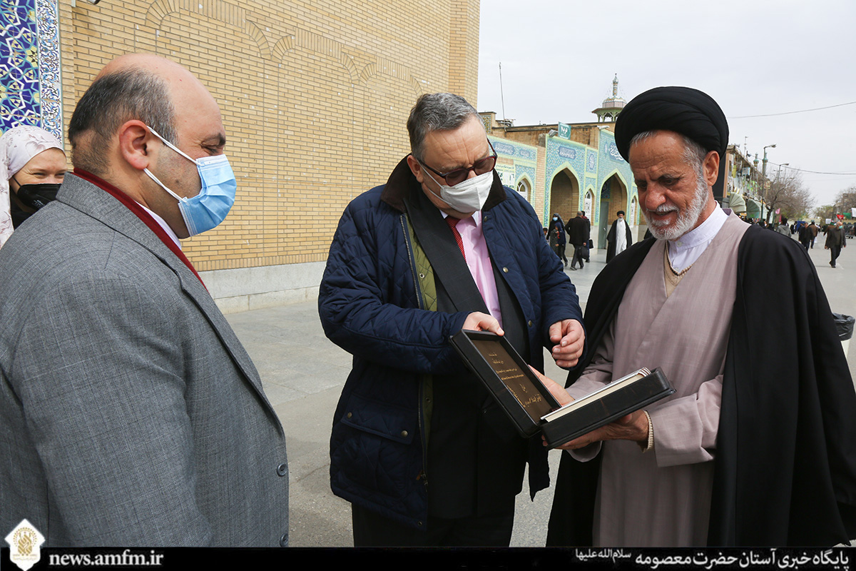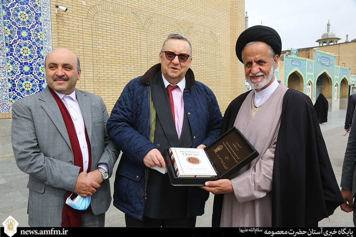 همچنین از طرف اداره امور بین الملل آستان مقدس بانوی کرامت یک جلد کلام الله مجید نفیس با ترجمه انگلیسی به سفیر فنلاند اهدا شد.