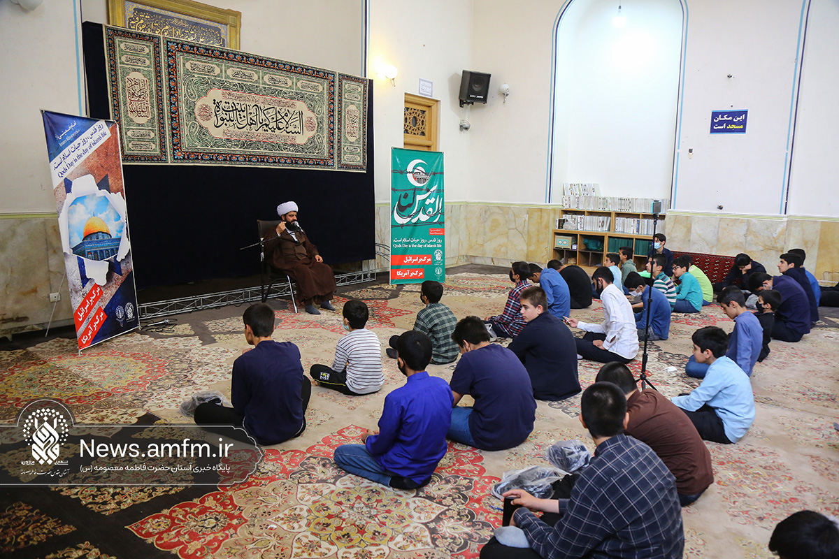 بزرگداشت روز جهانی قدس امروز با حضور نوجوانان فاطمی، سخنرانی حجتالاسلام والمسلمین کلاته، مداحی سید جواد موسوی و اجرای گروه سرود توسط سفیران کریمه اهلبیت(س) در شبستان مسجد اعظم برگزار شد.