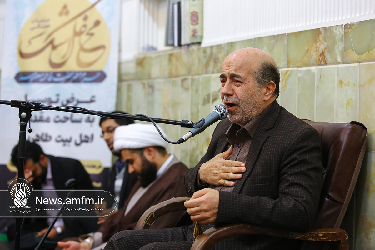 آخرین نشست جلسات هفتگی «محفل اشک» در ماه مبارک رمضان، با حضور مداحان و ذاکران اهلبیت(ع) شب گذشته در حرم کریمه اهلبیت(س) برگزار شد.