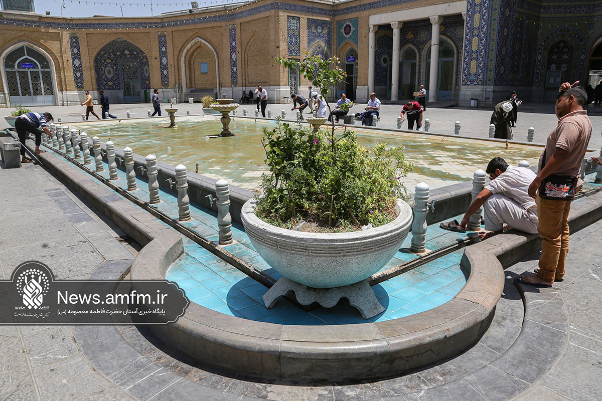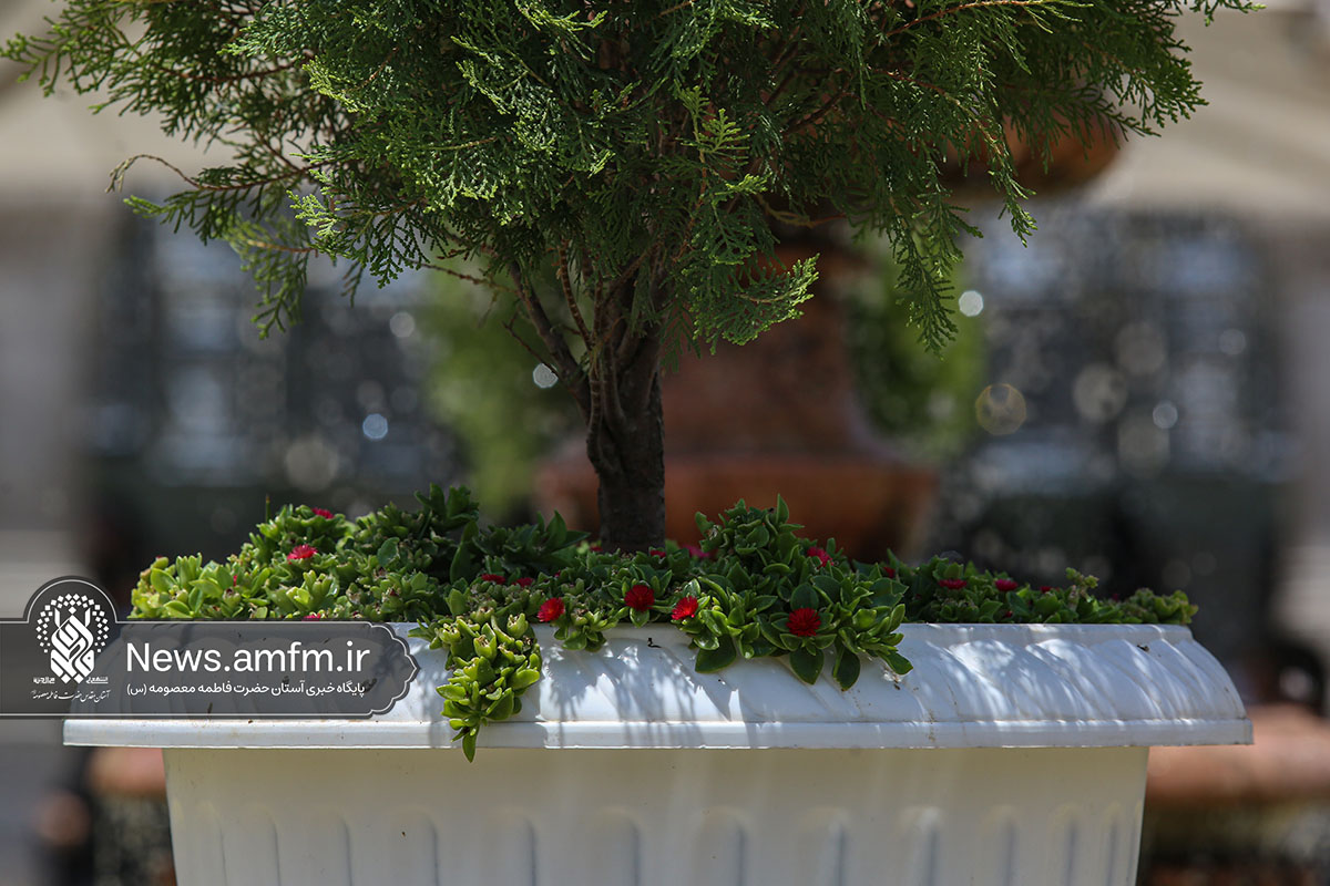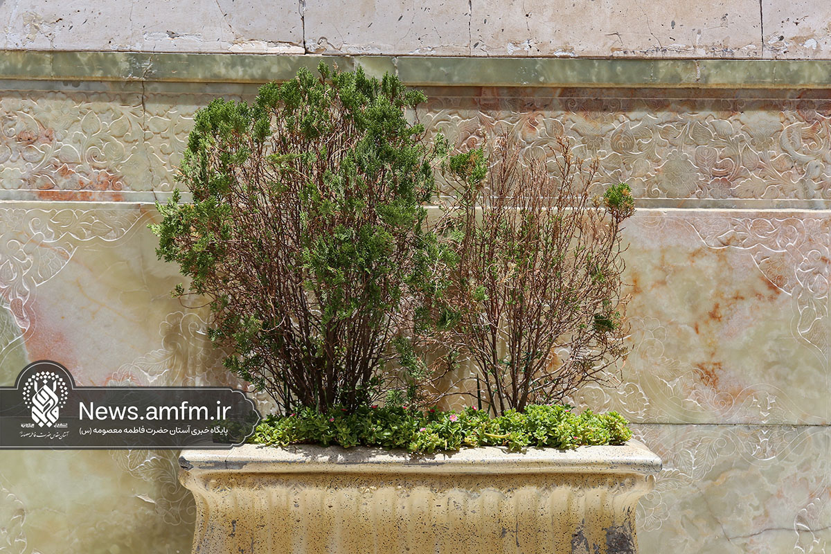 وی با بیان اینکه در داخل صحنها، رواقها و دفاتر حرم مطهر نیز به منظور ایجاد فضایی شاداب و باطراوت از گلدانها استفاده شده است، گفت: در صحن پیامبر اعظم(ص) ۳۰ گلدان، صحن امام رضا علیه السلام ۵۰ گلدان، صحن امام هادی علیه السلام ۵۰ گلدان، صحن جواد الائمه علیه السلام ۲۶۱ گلدان و صحن صاحب الزمان(عج) ۲۰ گلدان وجود دارد که در مجموع بیش از ۴۰۰ عدد گلدان را شامل می شود.