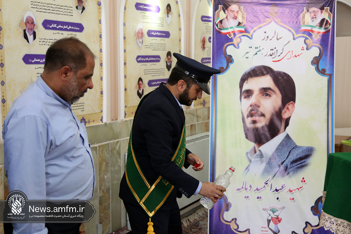 در این مراسم که با حضور و مشارکت تعدادی از خادمان آستان مقدس فاطمی انجام گرفت مزار شهیدان که در این حرم مطهر مدفون هستند از جمله شهید عبدالحمید دیالمه و حجتالاسلام محمد منتظری غبارروبی و گل آرایی شد.