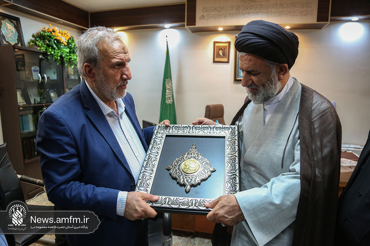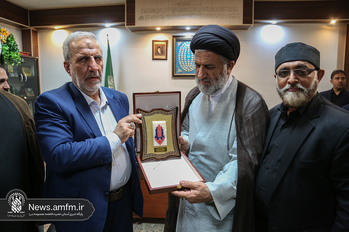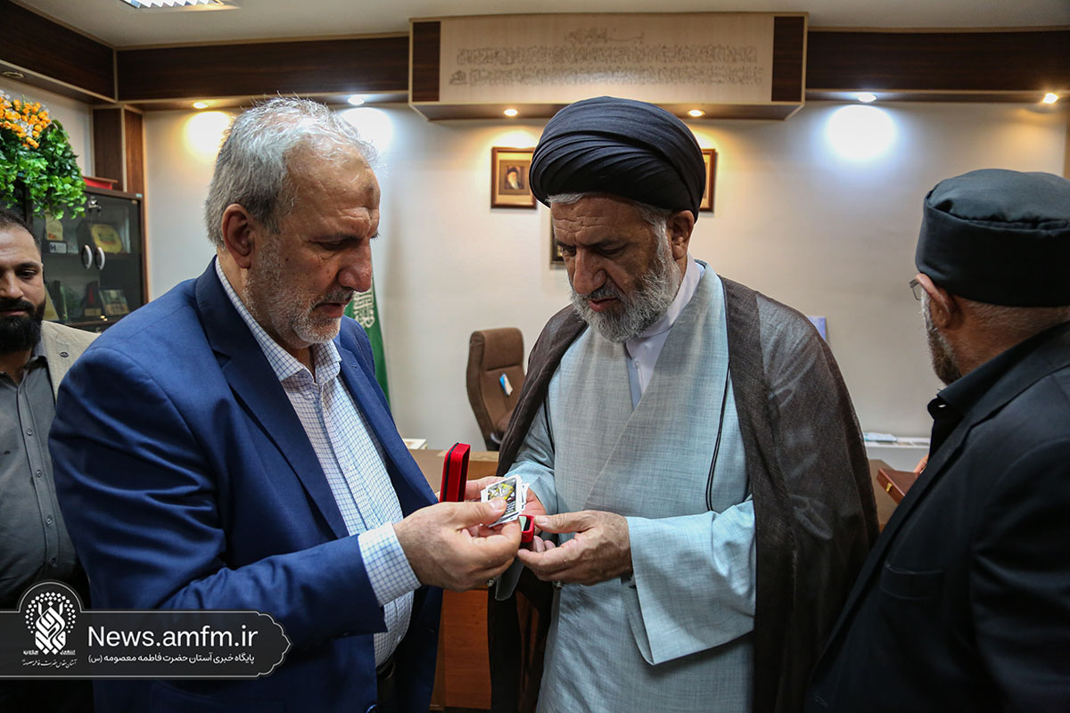 به گزارش پایگاه خبری آستان مقدس حضرت معصومه سلام الله علیها، حسن رشید تولیت قانونی حرم مطهر امام حسین علیه السلام پیش از ظهر امروز با حضور در حرم مطهر بانوی کرامت با حجت الاسلام والمسلمین حسینی نژاد مشاور تولیت حرم مطهر حضرت معصومه سلام الله علیها دیدار و پرچم گنبد مطهر حرم امام حسین علیه السلام را به وی اهدا کرد.