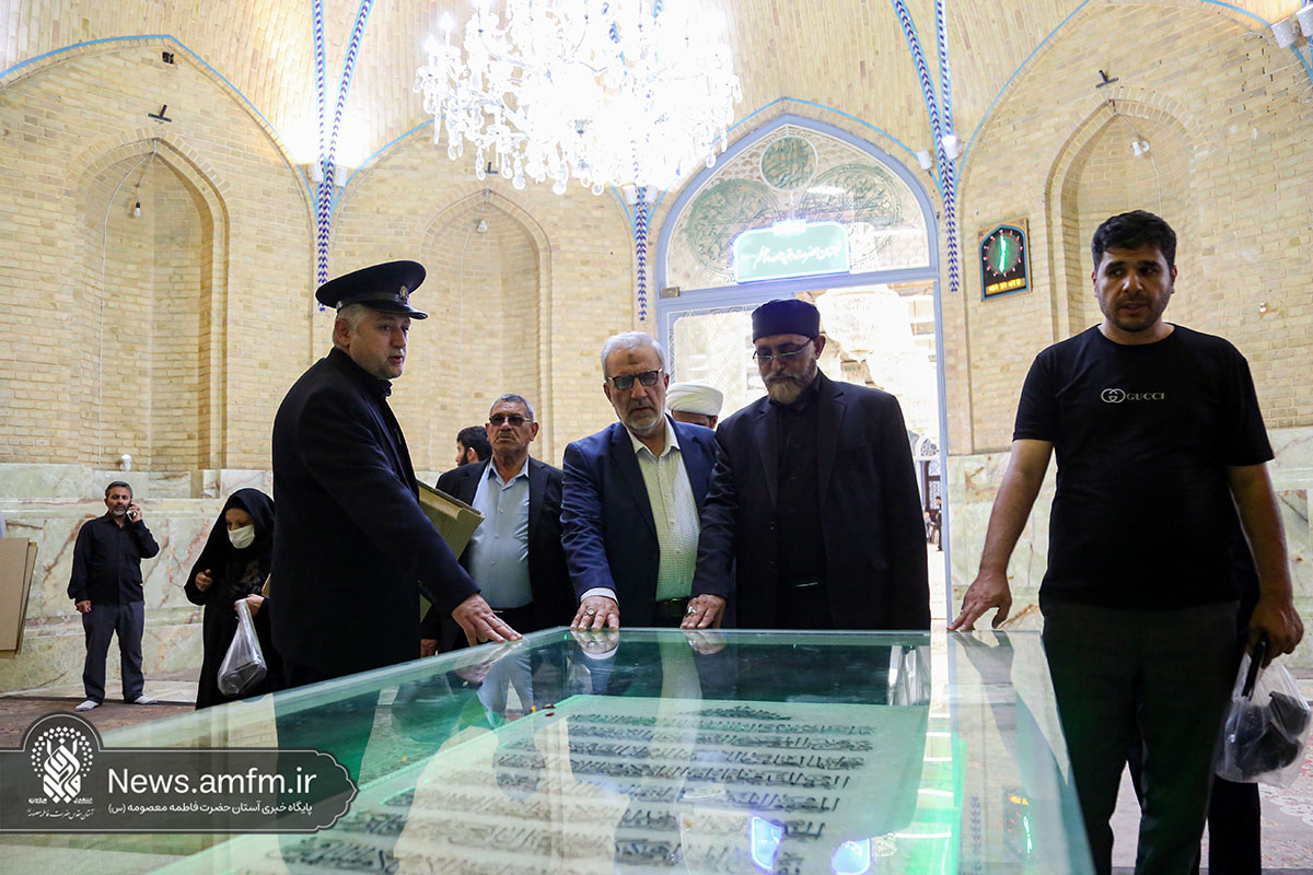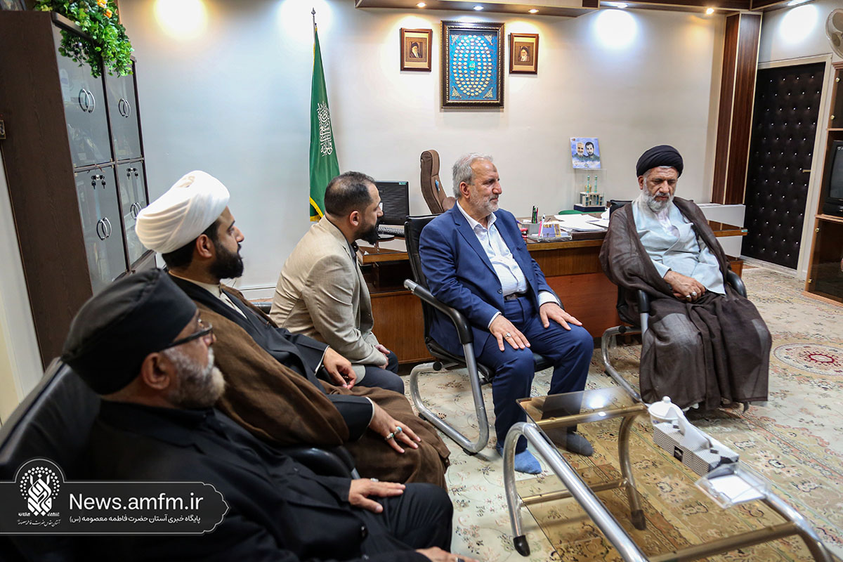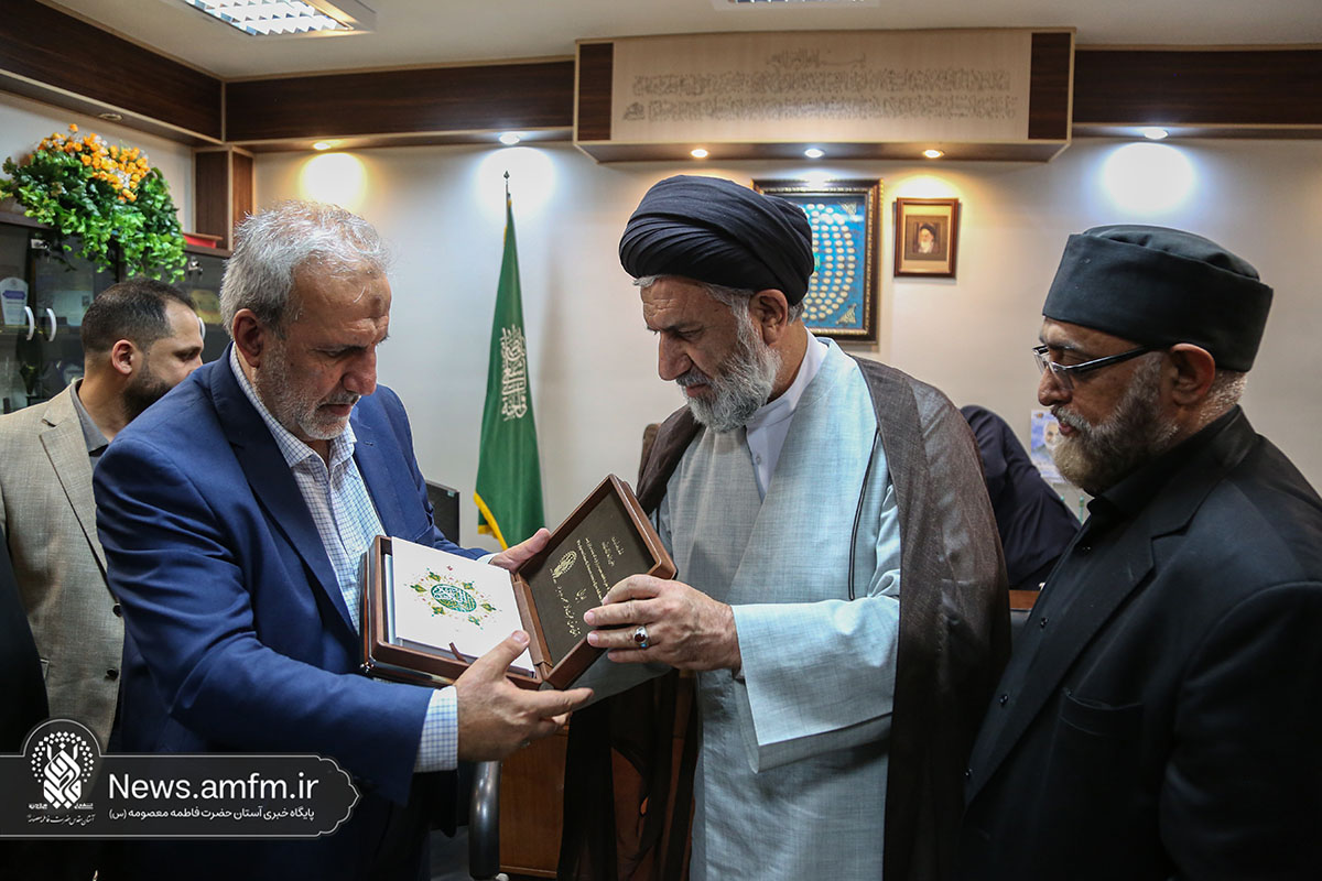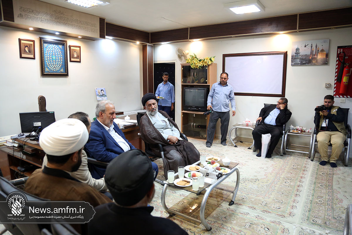 به گزارش پایگاه خبری آستان مقدس حضرت معصومه سلام الله علیها، حسن رشید تولیت قانونی حرم مطهر امام حسین علیه السلام پیش از ظهر امروز با حضور در حرم مطهر بانوی کرامت با حجت الاسلام والمسلمین حسینی نژاد مشاور تولیت حرم مطهر حضرت معصومه سلام الله علیها دیدار و پرچم گنبد مطهر حرم امام حسین علیه السلام را به وی اهدا کرد.