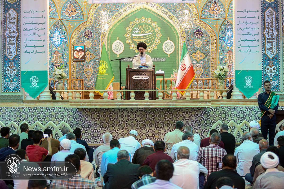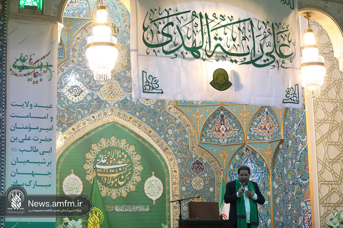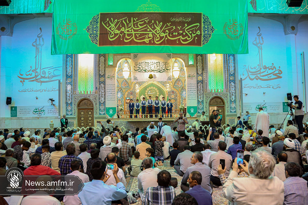 حرم مطهر کریمه اهلبیت(س) در شب عید غدیر با برگزاری مراسم جشن بزرگ شهر الولایه با سخنرانی حجت الاسلام والمسلمین سیدحسین مؤمنی و مداحی سیدرضا تحویلدار از زائران و مجاوران حرم میزبانی کرد.