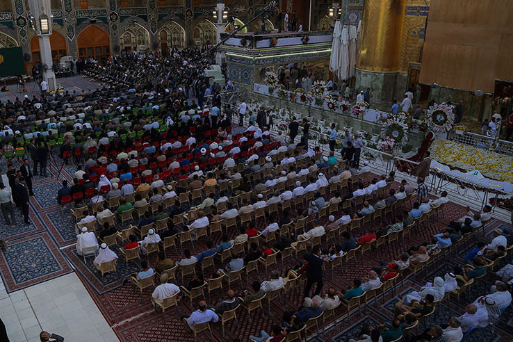 مراسم اختتامیه جشن های غدیر با حضور حجج اسلام والمسلمین حسینینژاد، مشاور تولیت و احمدی، معاون فرهنگی آستان حضرت فاطمه معصومه سلام الله علیها که به نمایندگی از آیت الله سعیدی در این آیین حضور داشتند، در صحن حرم مطهر امام علی(ع) در شهر نجف اشرف، برگزار شد.