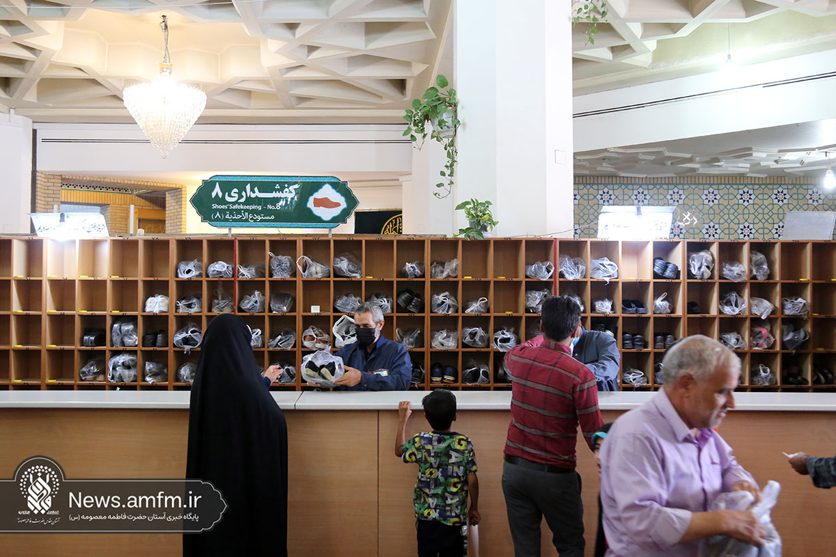 همچنین کفشداری ورودی به روضه منوره از سمت صحن امام هادی علیه السلام ویژه آقایان و سایر کفشداری های حرم مطهر شامل ورودی درب ۸ به هشتی شرقی، ورودی صحن صاحب الزمان به هشتی غربی و ورودی مسجد اعظم به مسجد بالاسر به صورت خانوادگی است.