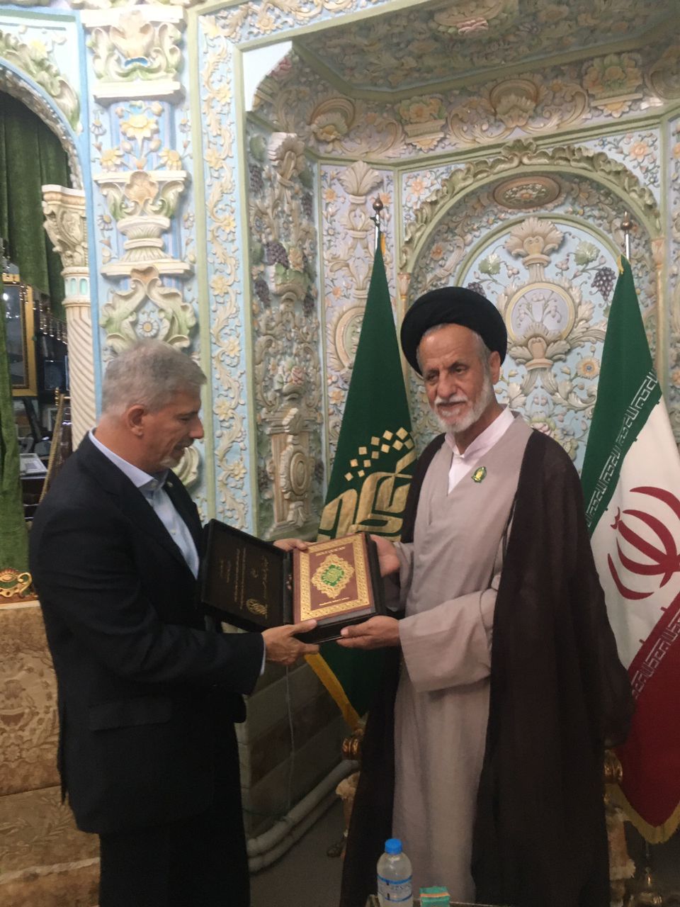 در ادامه بازدید سفیر برزیل از حرم مطهر بانوی کرامت وی در مقبره مستوفی الممالک حضور یافت و یک قرآن نفیس با ترجمه انگلیسی از طرف این آستان مقدس به وی اهدا شد.