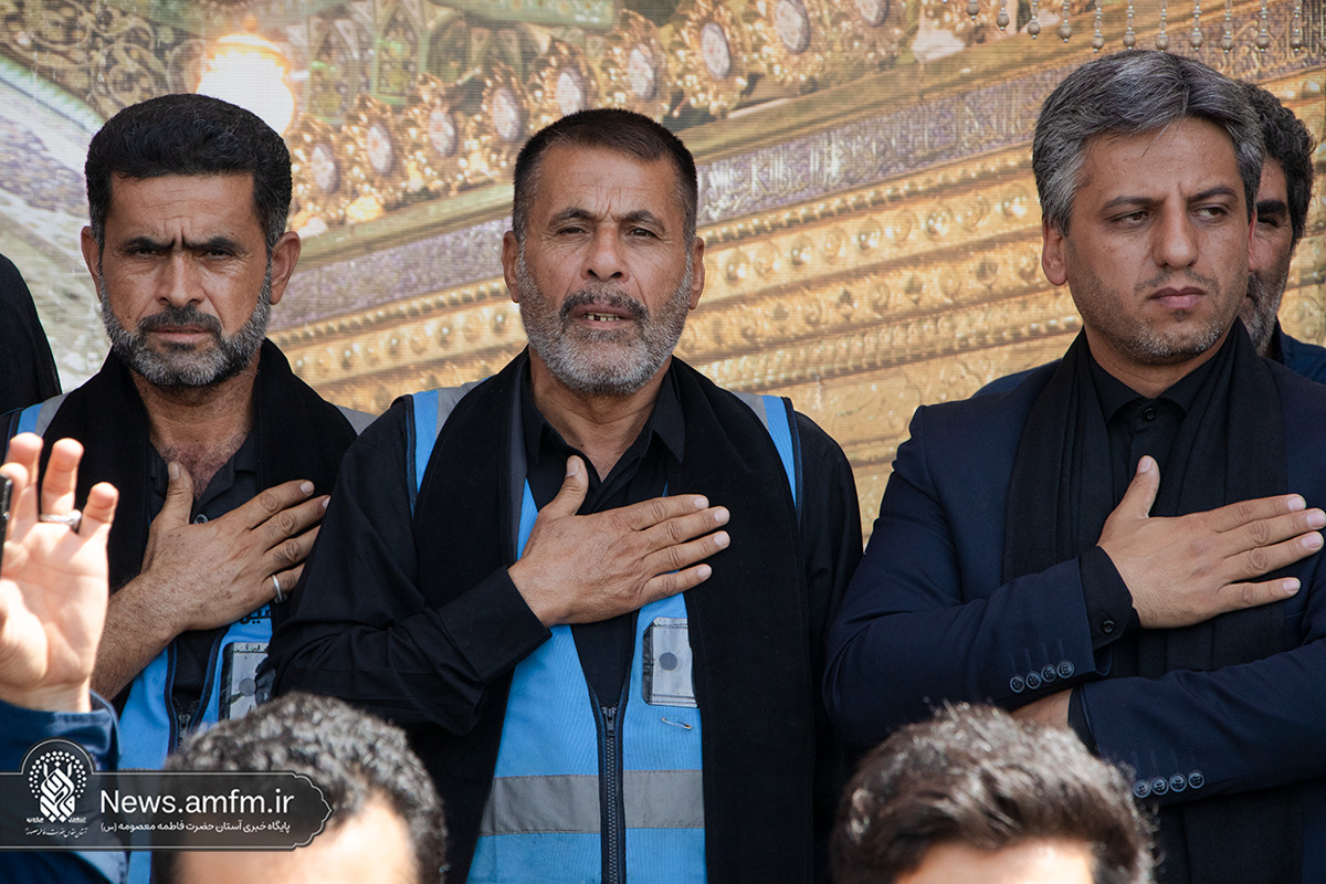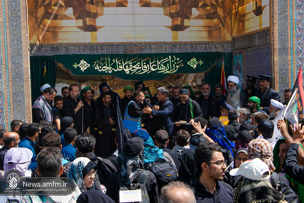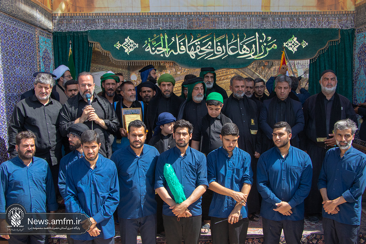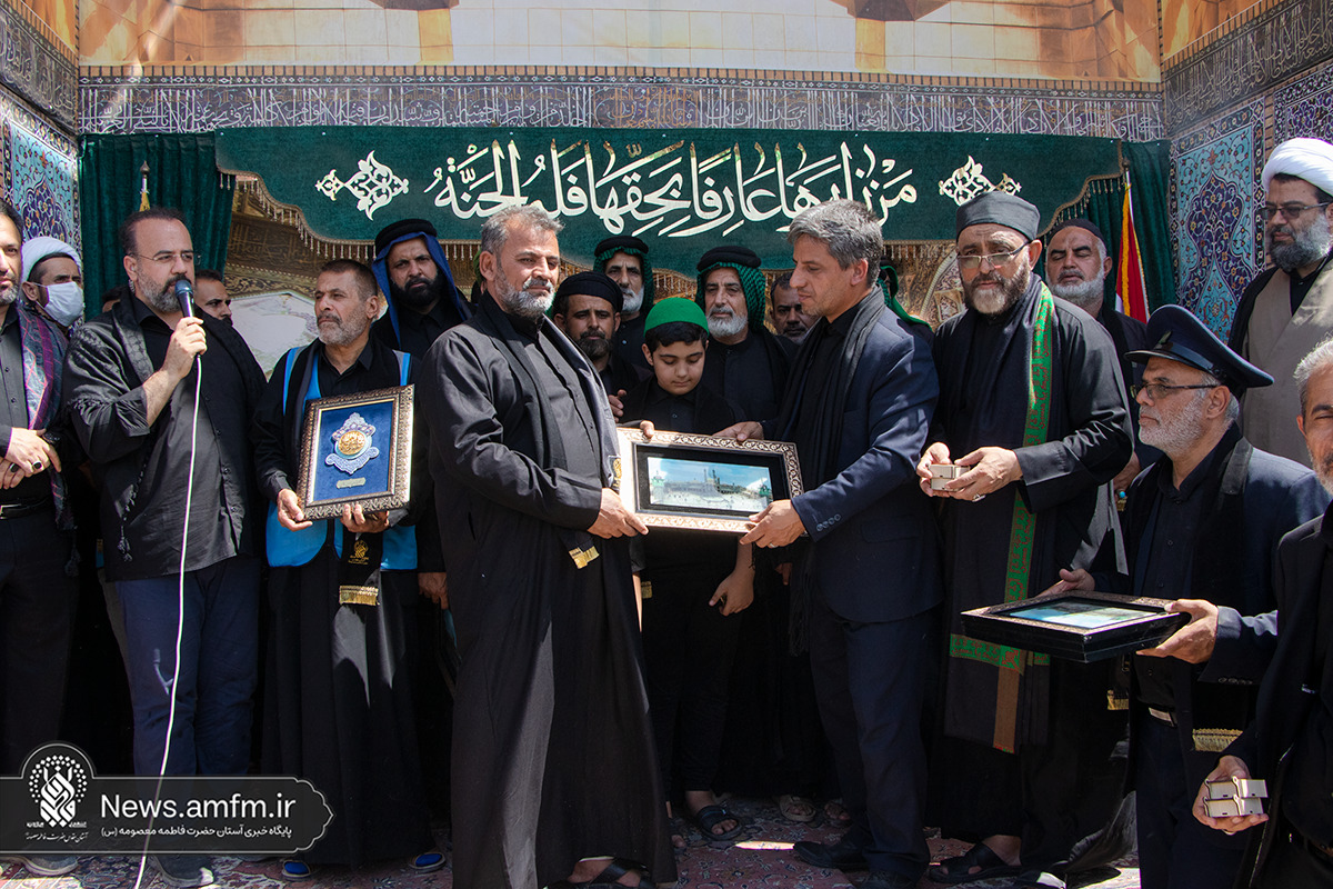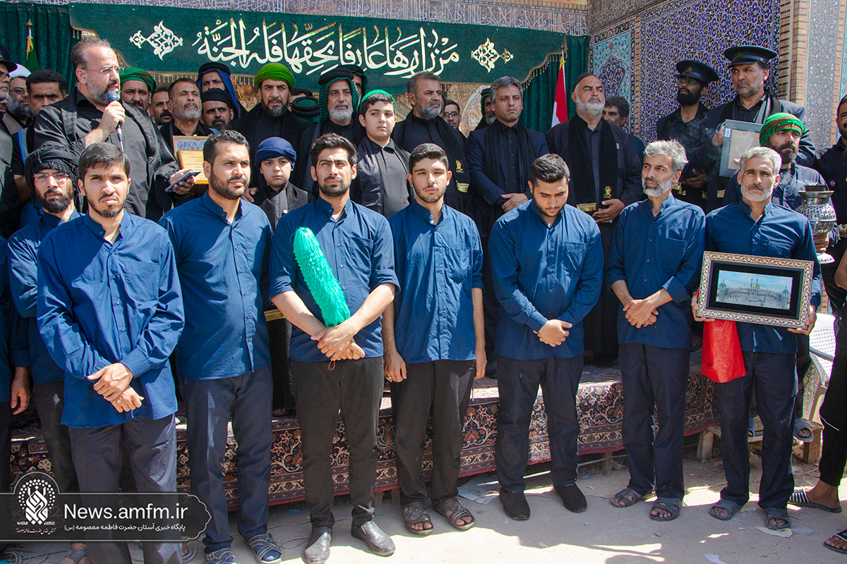 در این مراسم جمعی از مدیران و خادمان مواکب مستقر در عمود ۱۰۸۰ و همسایگان موکب آستان مقدس قم حضور داشتند و با دریافت نشان فاطمی، نگین انگشتری حرم مطهر قم و متبرکات آستان مقدس مورد تقدیر قرار گرفتند.