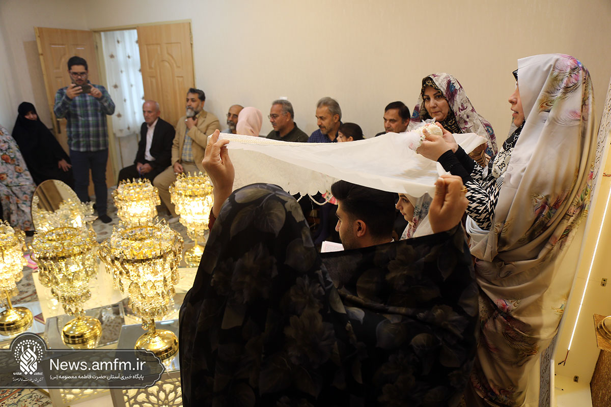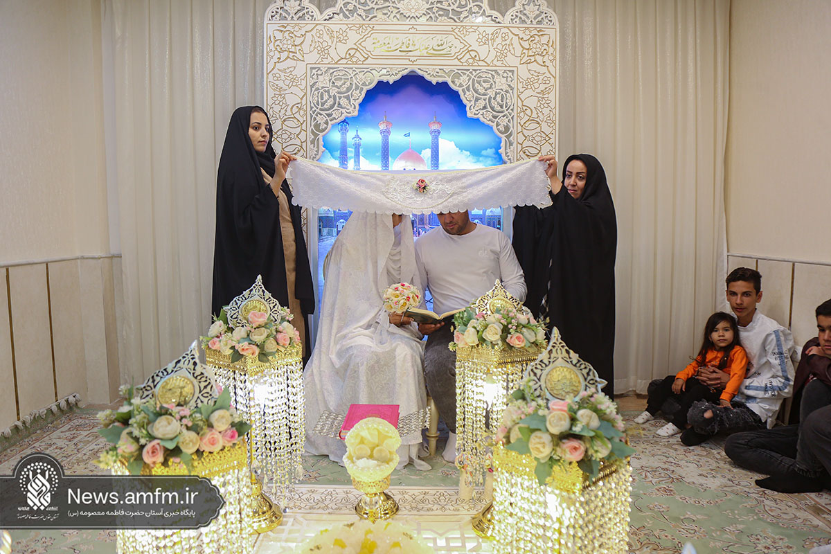 اتاق عقد حرم مطهر بانوی کرامت با تغییر دکوراسیون و چینش جدید سفره عقد هر روز بجز ایام عزاداری اهل بیت(ع) با ظرفیت دو اتاق عقد از ساعت ۱۱ الی ۱۸ به صورت یکسره پذیرای زوجهای جوان است.