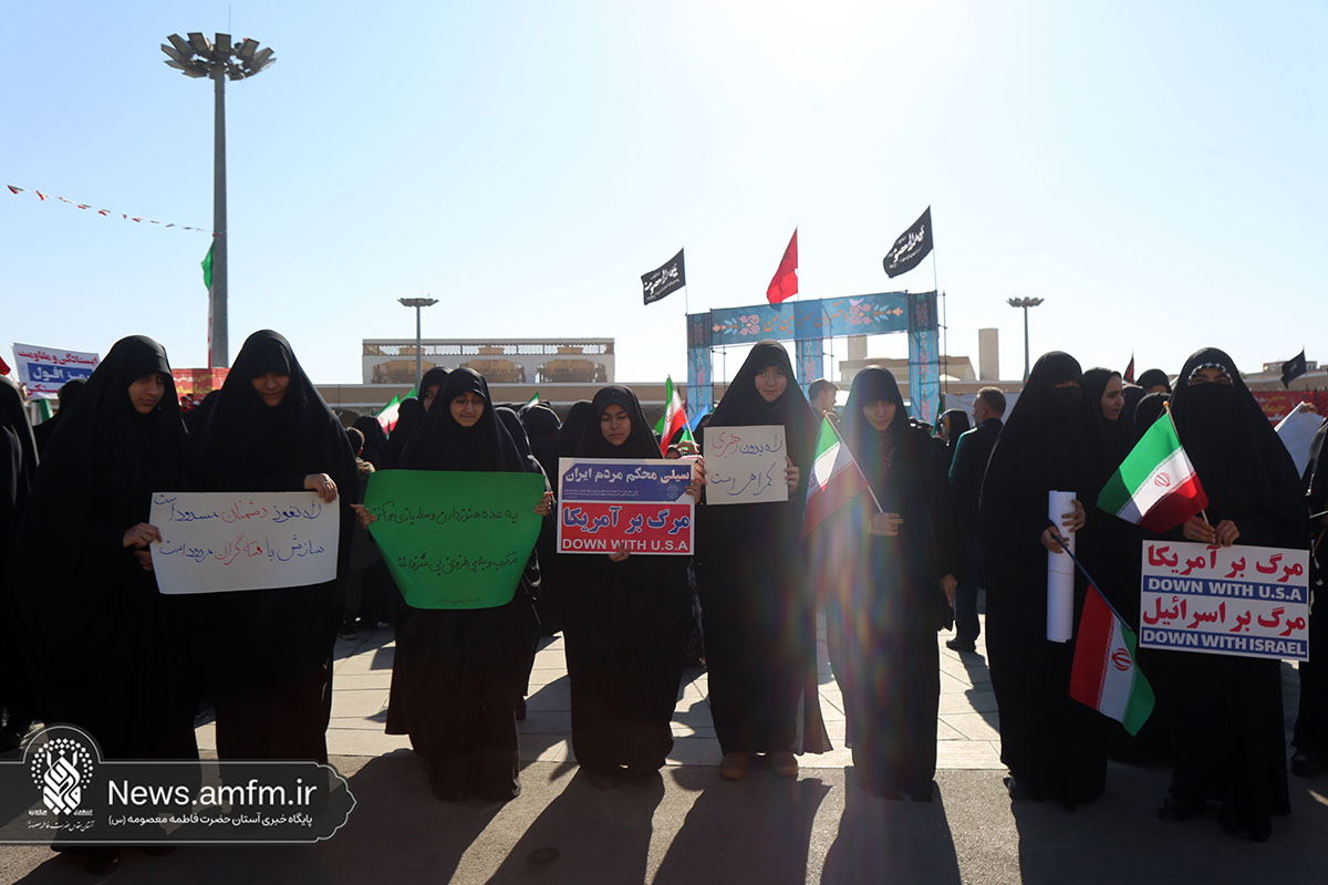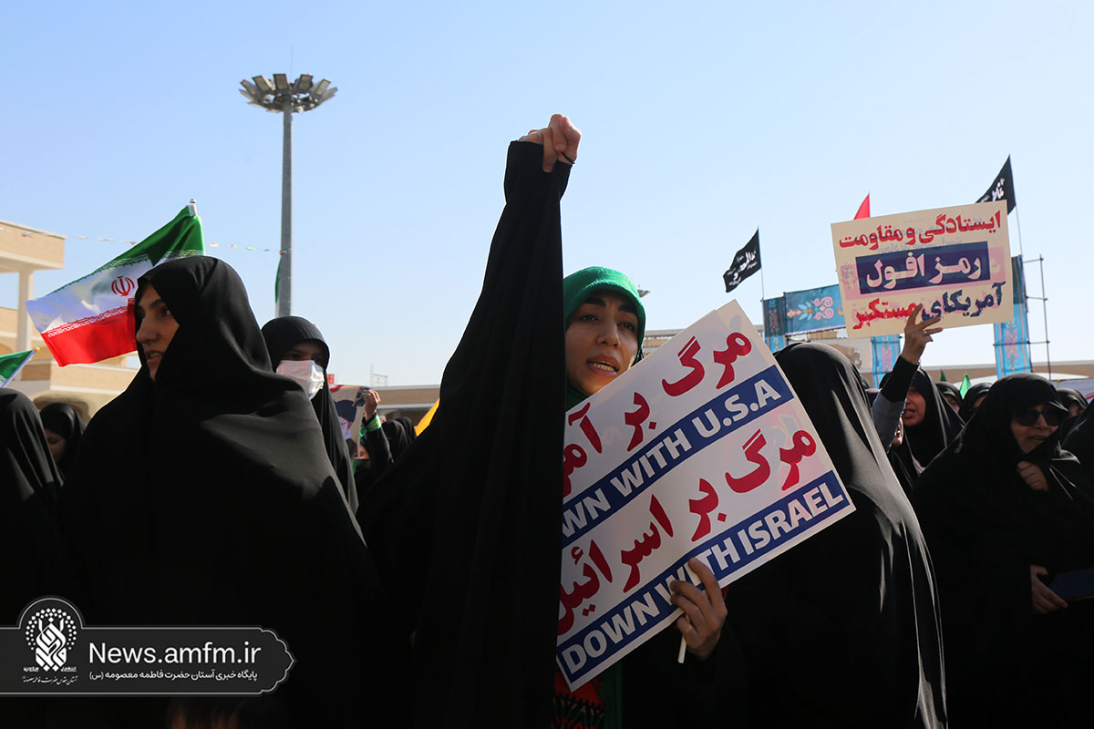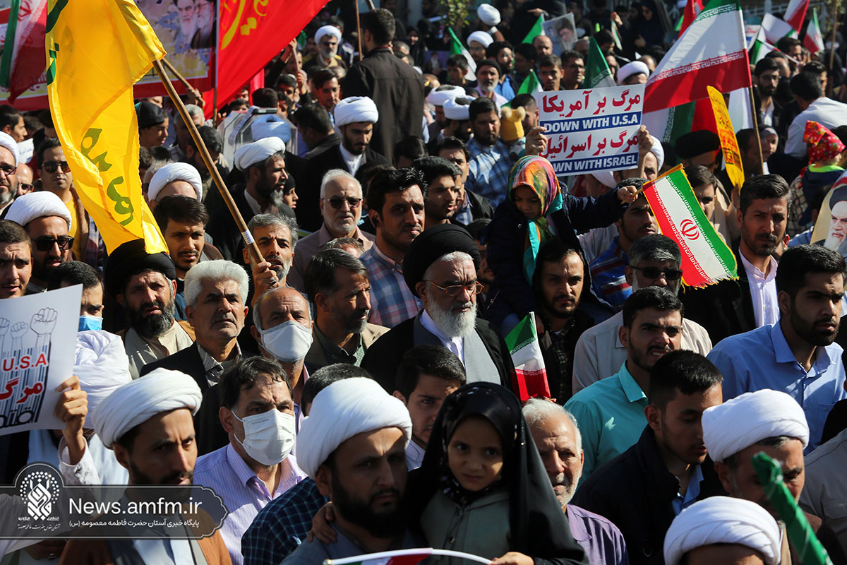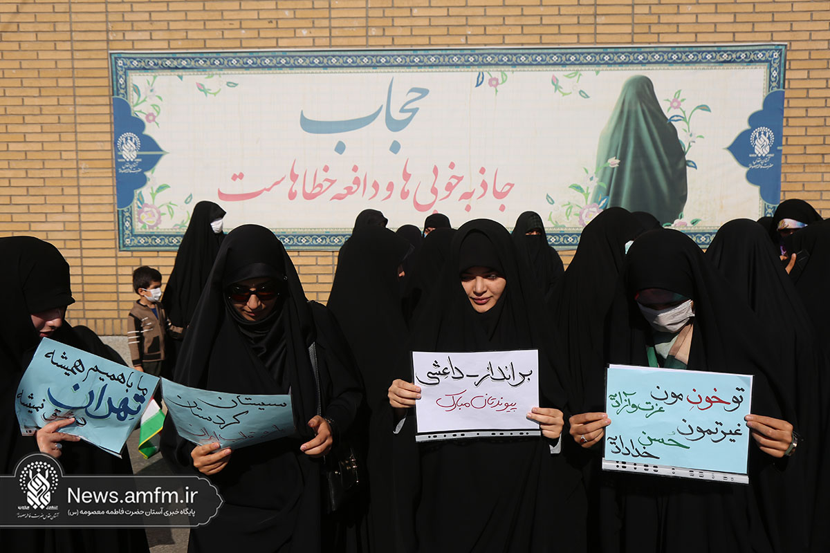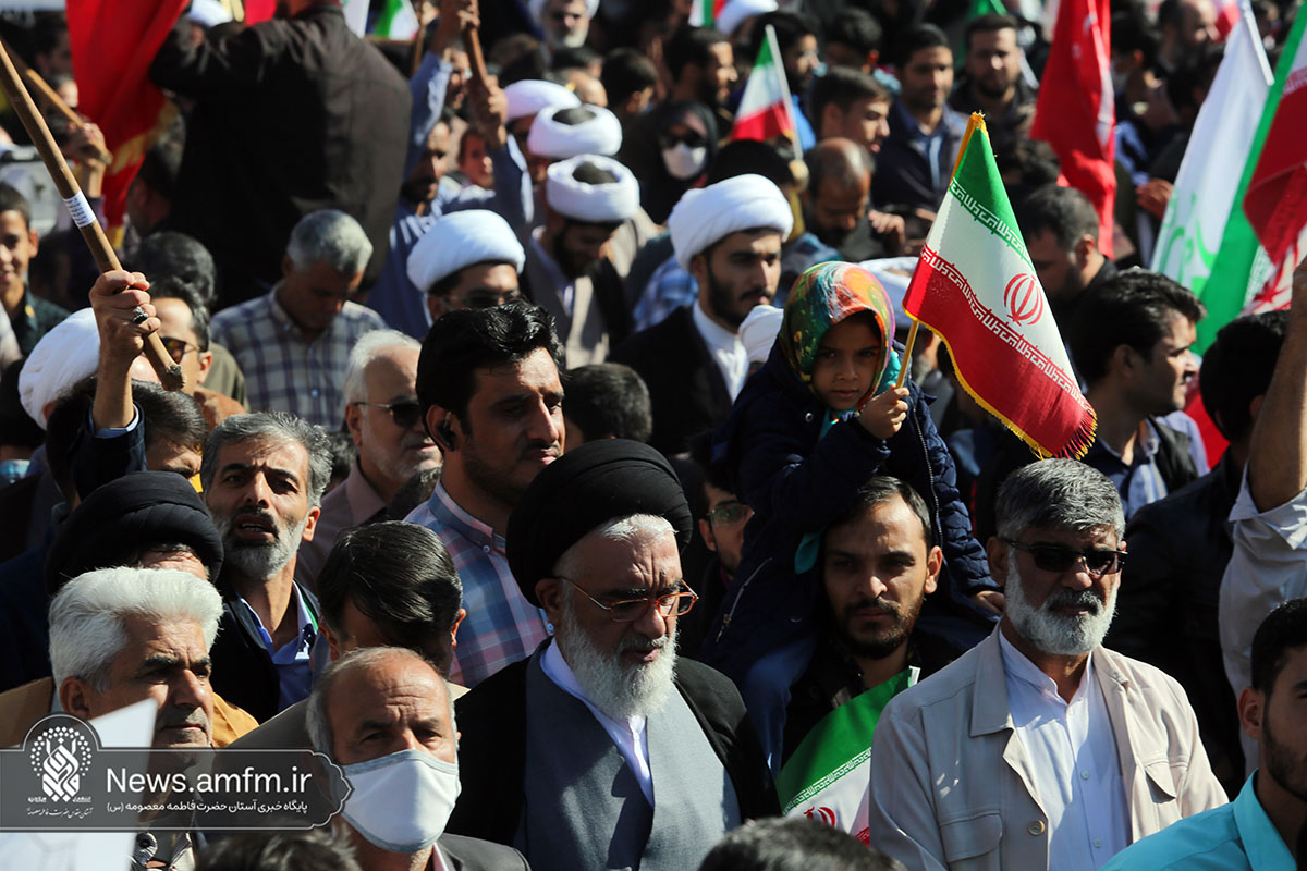 مراسم یوم الله ۱۳ آبان، همزمان با سراسر کشور در قم برگزار شد و مردم قم از حرم حضرت فاطمه معصومه سلامالله علیها به سمت مصلی قدس حرکت کرده و با شعارهایی علاوه بر انزجار از آمریکا، اسرائیل و دیگر حامیان آنان، ترور وحشیانه حرم حضرت شاهچراغ(ع) را هم محکوم کردند.
