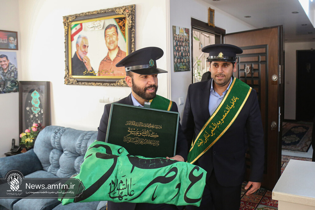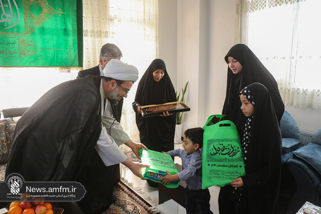 در این دیدار حجتالاسلام والمسلمین مهدی احمدی معاون فرهنگی و هادی محمودنژاد معاون اجرایی آستان مقدس حضرت فاطمه معصومه سلام الله علیها حضور داشته و به نمایندگی از آیتالله سعیدی تولیت آستان و امام جمعه قم، با اهدای متبرکات فاطمی از خانواده شهید مظفرینیا تجلیل کردند.