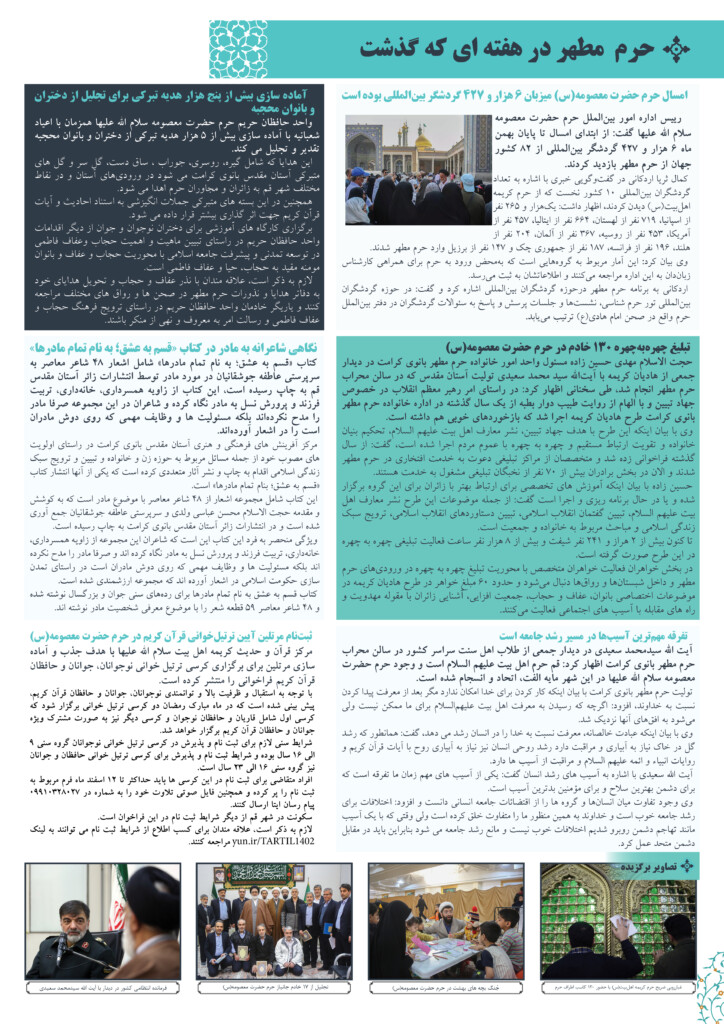 چهل و ششمین خبرنامه آستان مقدس بانوی کرامت منتشر شد