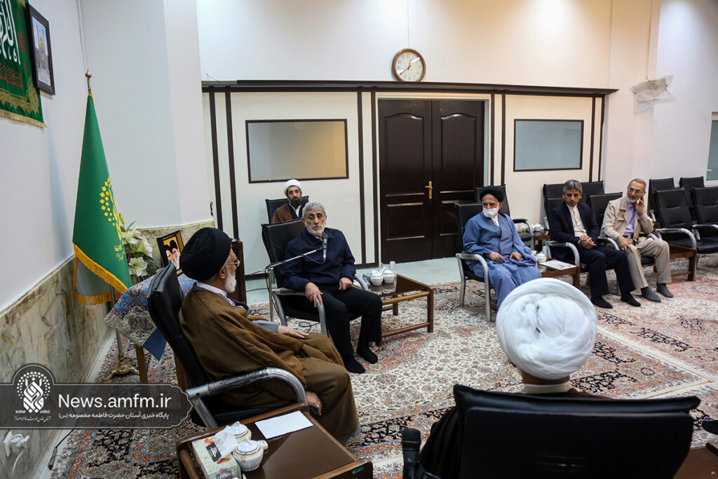 به گزارش پایگاه خبری آستان حضرت فاطمه معصومه سلام الله علیها، سردار اسماعیل قاآنی ظهر امروز در دیدار با آیتالله سید محمد سعیدی تولیت آستان مقدس و امام جمعه قم که در سالن محراب آستان مقدس انجام شد، با بیان اینکه نهالهایی که حضرت امام خمینی(ره) کاشتند هر کدام امروز به درختهای تونمندی تبدیل شده است، اظهار کرد: از این نهالها در جاهای مختلف پیوند زده شده یا از ثمرات آنها برکات مختلفی ایجاد شده است؛ دشمنان هم گاهی اعتراف میکنند و میگویند که اینها دستهای جمهوری اسلامی ایران هستند که درحال مبارزه با ظلم هستند.