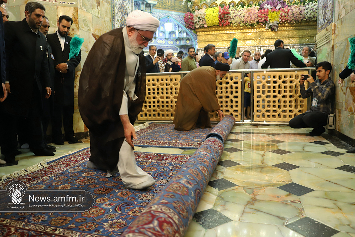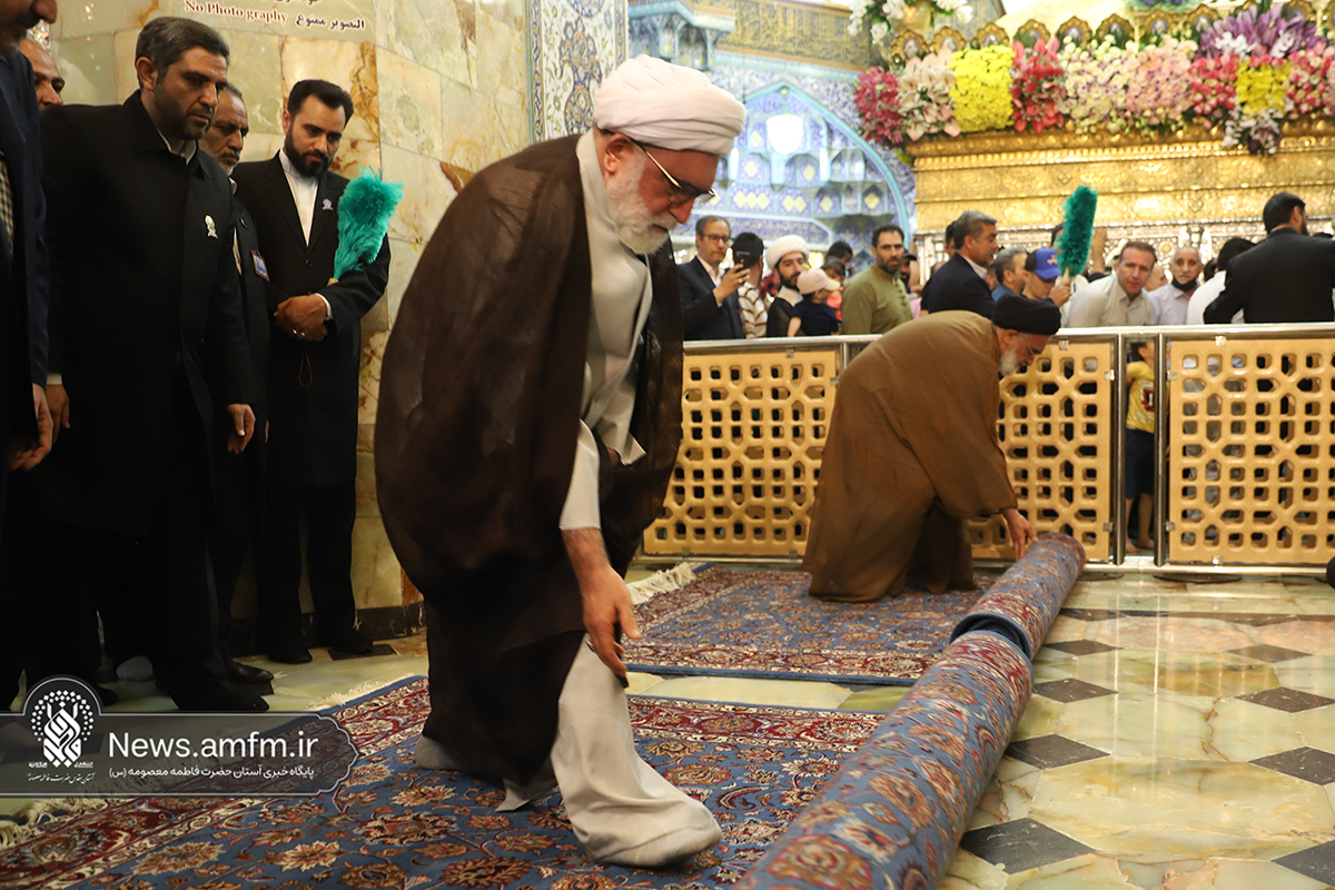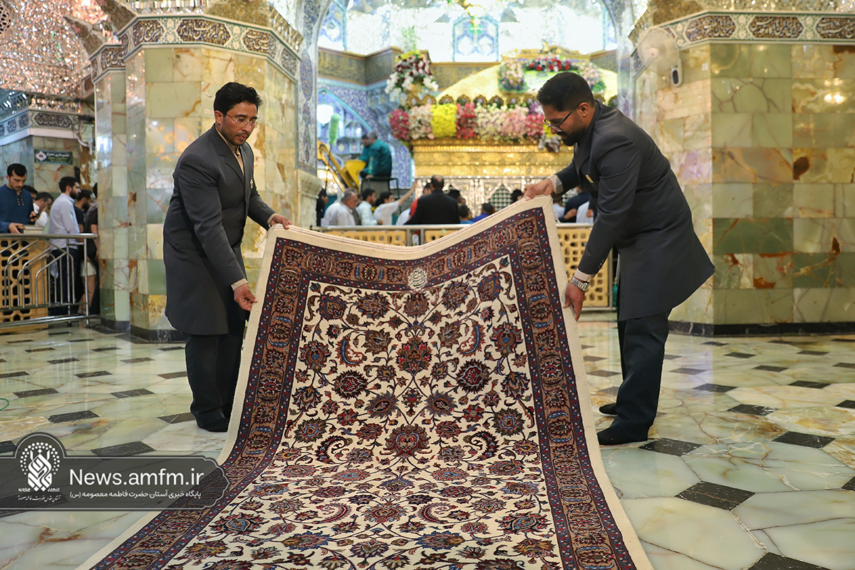 گفتنی است اولین فرش ها به دست تولیت های دو آستان مقدس در این آیین در اطراف روضه منوره حرم حضرت معصومه سلام الله علیها پهن شد و در ادامه مسجد بالاسر توسط زائران مفروش شد.