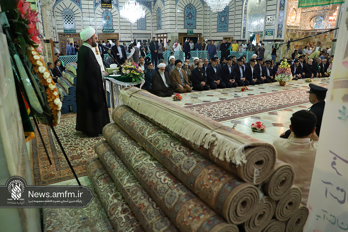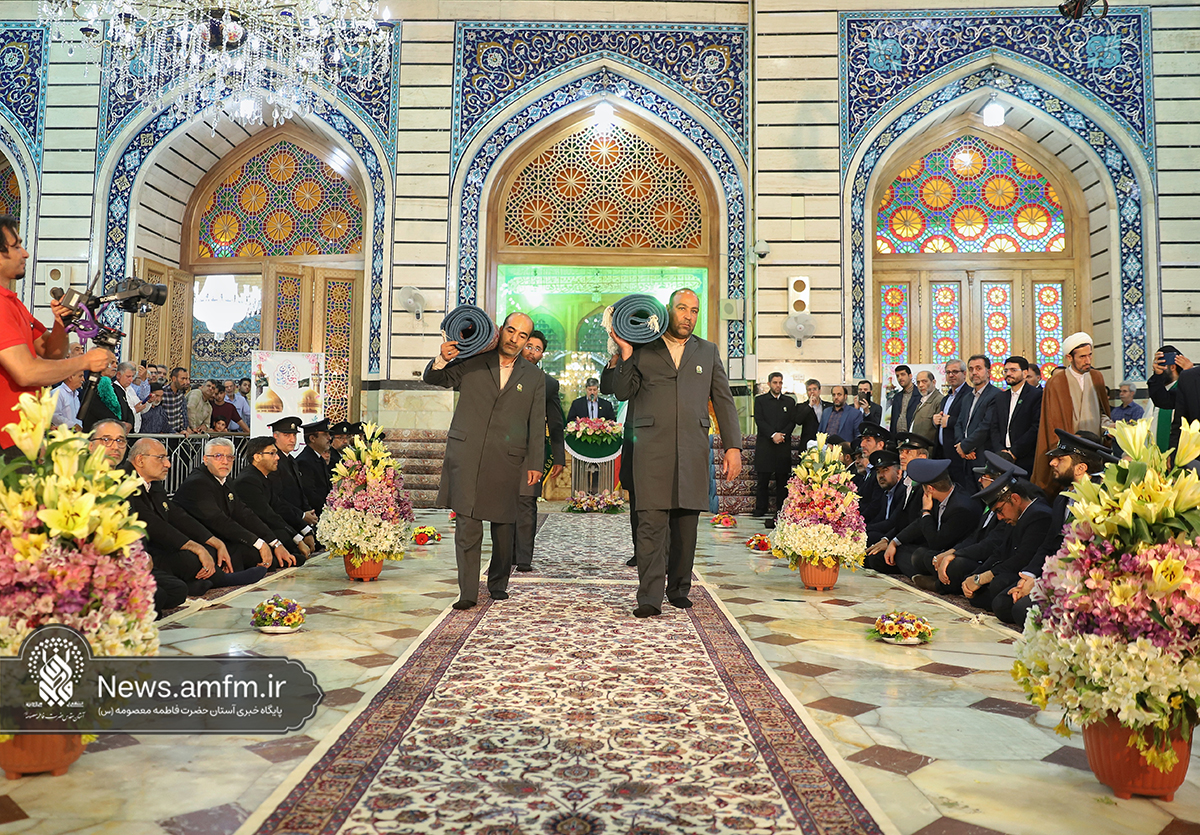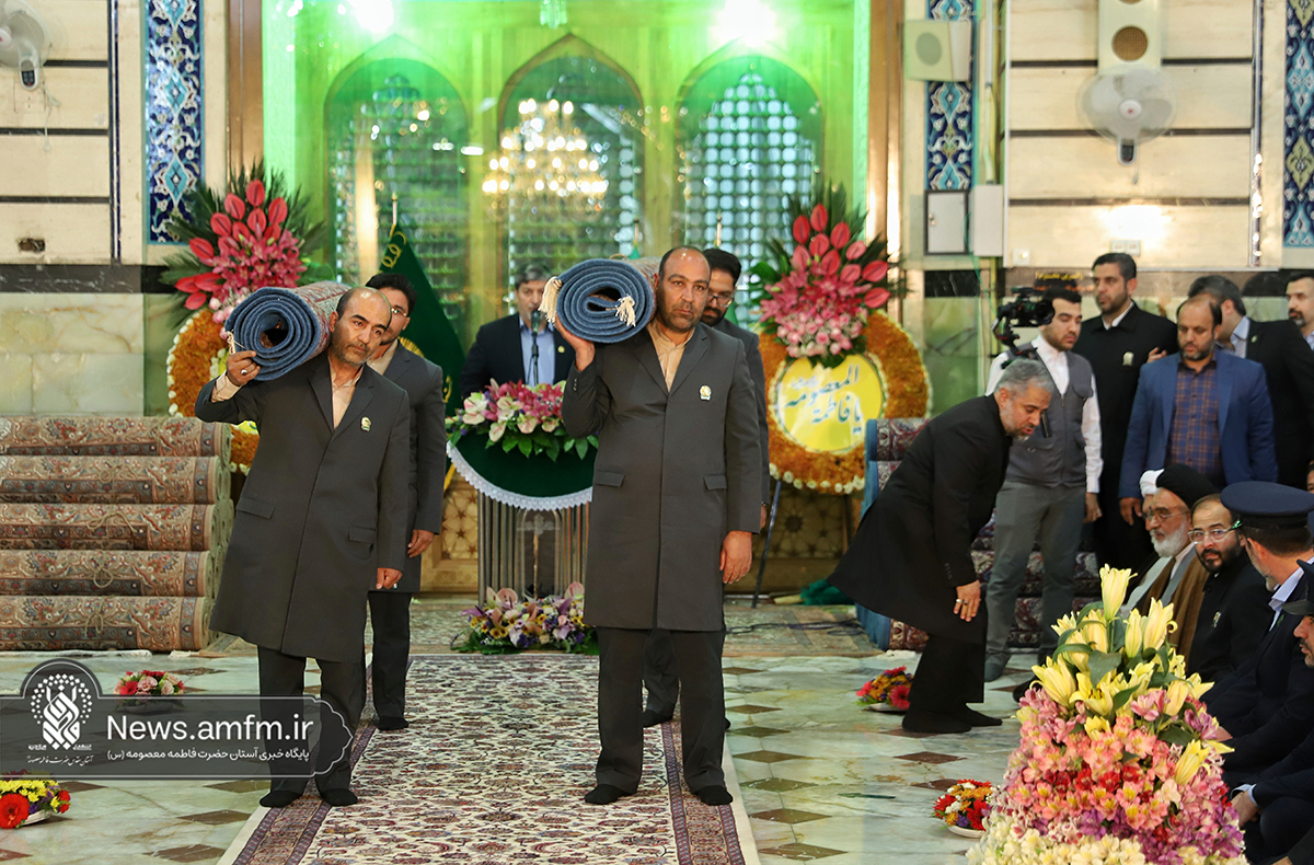 به گزارش پایگاه خبری آستان مقدس حضرت معصومه سلام الله علیها، آیین مفروش کردن اطراف روضه منوره حرم مطهر بانوی کرامت با فرش های اهدایی آستان قدس رضوی عصر امروز با حضور تولیت حرم امام رضا علیه السلام و تولیت حرم حضرت معصومه سلام الله علیها در مسجد بالاسر حرم مطهر بانوی کرامت برگزار شد.