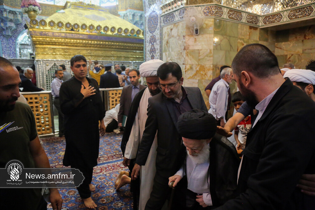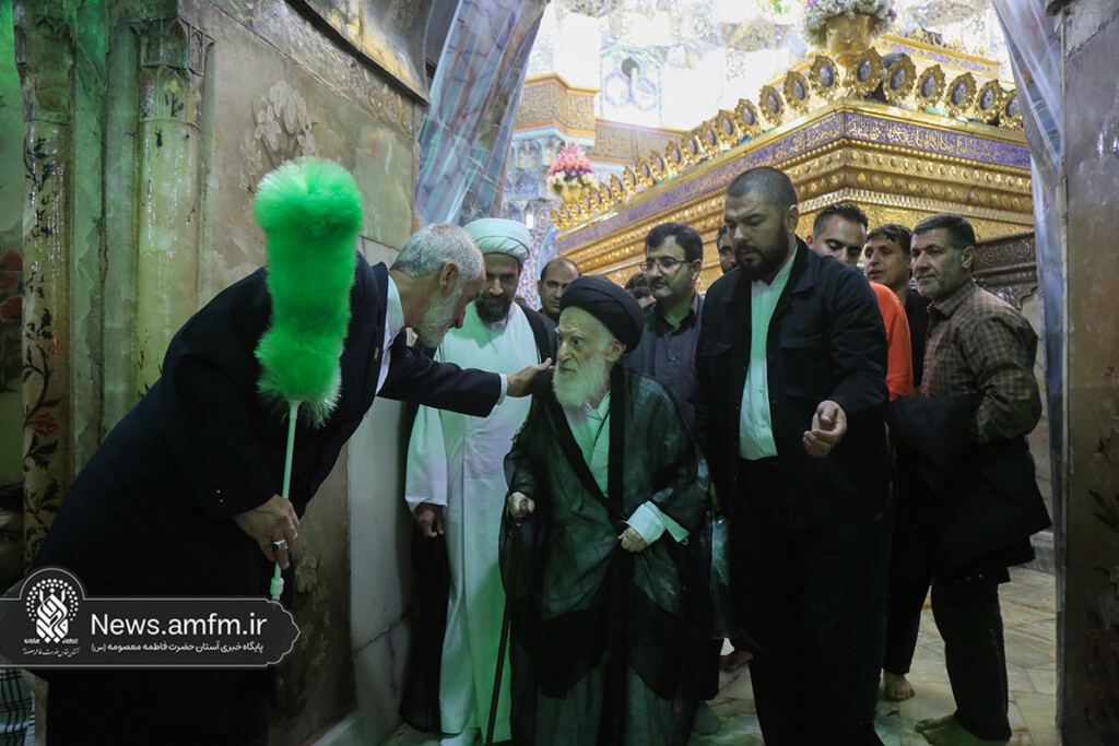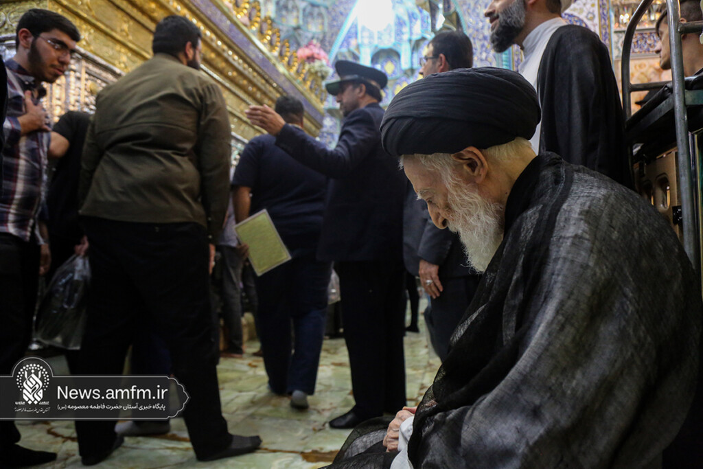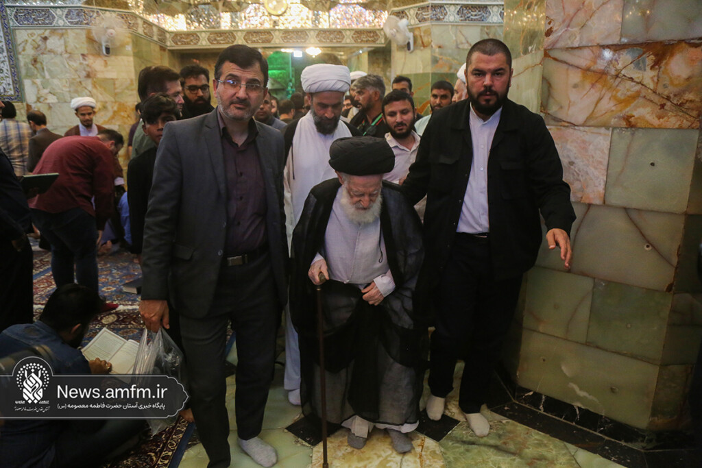 آیتالله سید موسی شبیری زنجانی مرجع تقلید شیعیان به زیارت حرم حضرت معصومه سلام الله علیها مشرف شد و ضمن حضور بر سر مزار علما، در جوار ضریح به اقامه نماز و دعا پرداخت.