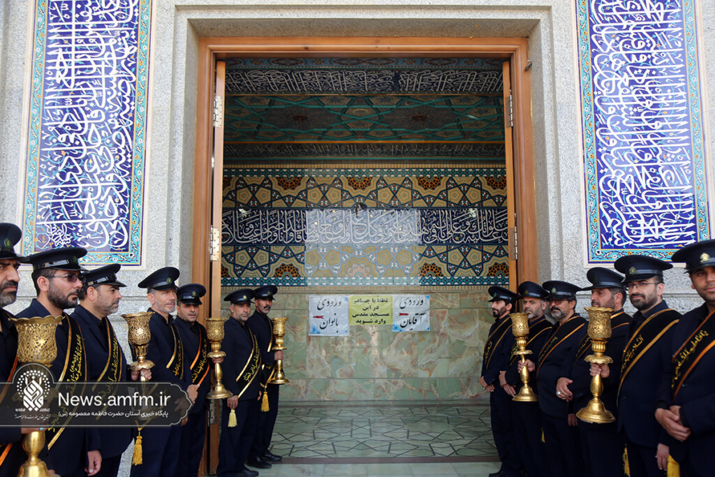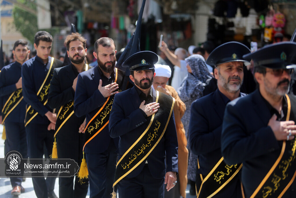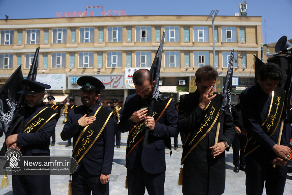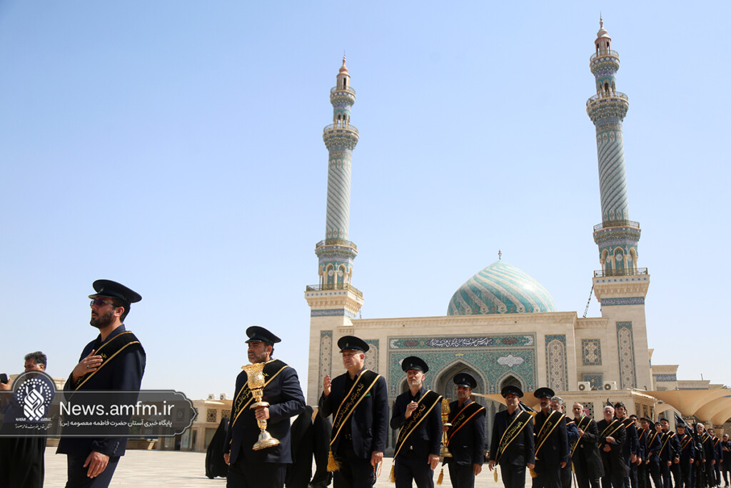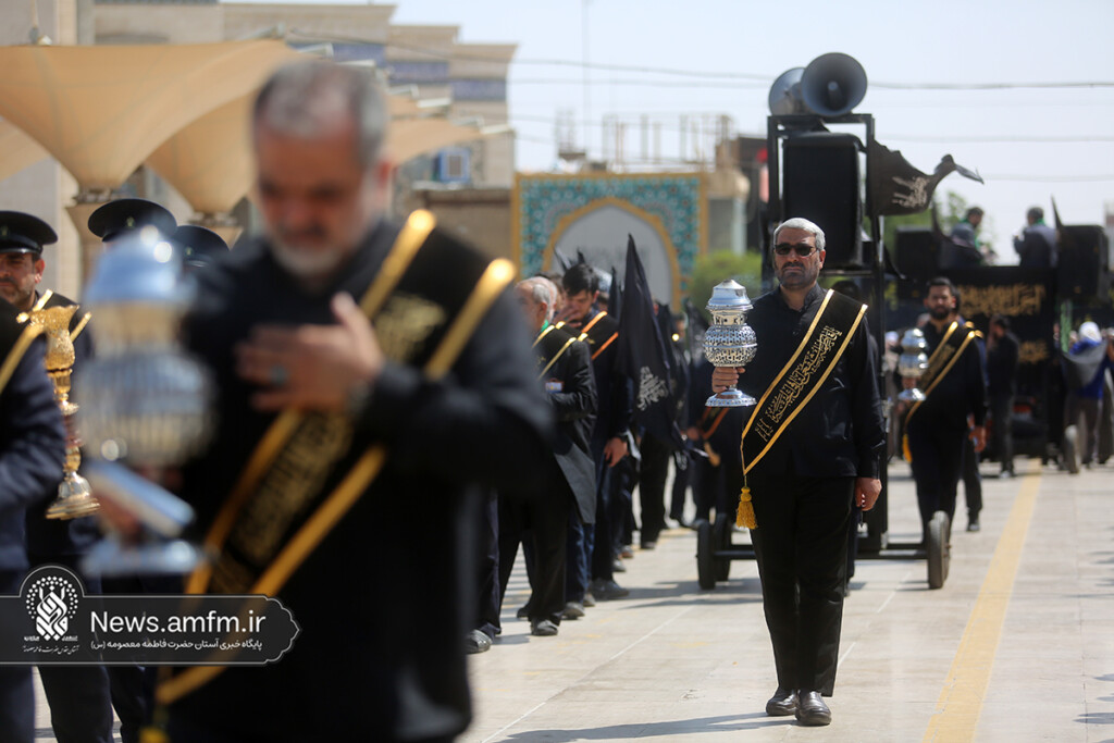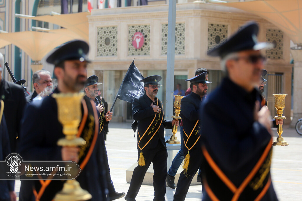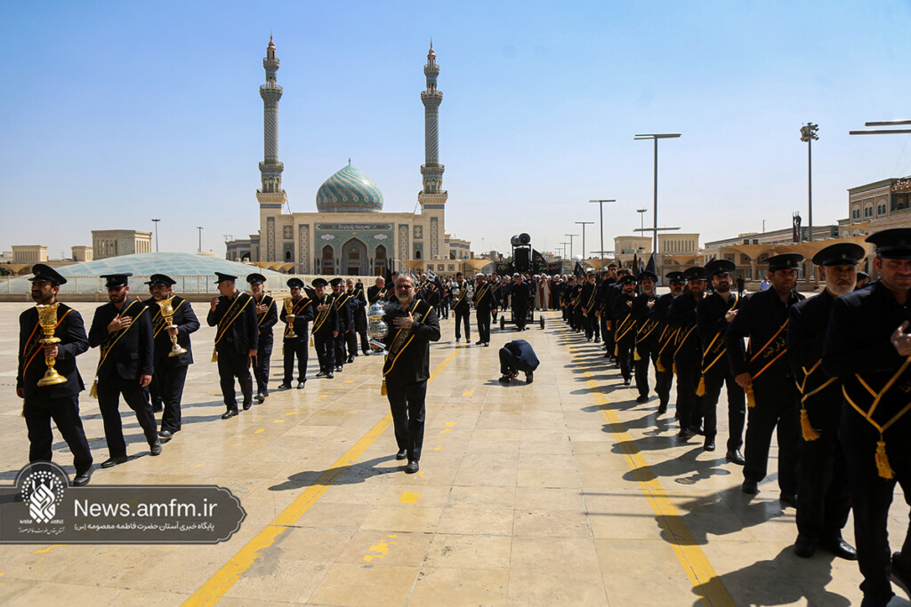 دسته عزاداری خادمان حرم حضرت معصومه سلام الله علیها به مناسبت سالروز شهادت امام جواد علیه السلام از مسجد امام حسن عسکری علیه السلام به سمت حرم مطهر برپا شد.