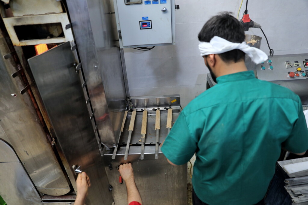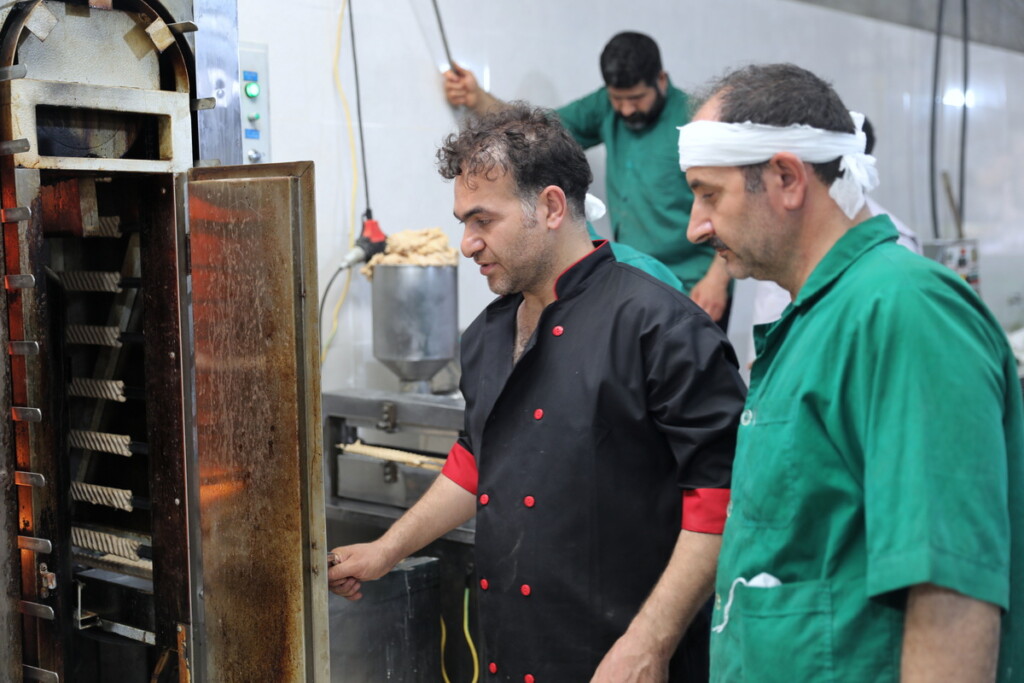 احمدی مسئول نانوایی موکب آستان حضرت معصومه سلام الله علیها نیز خاطرنشان ساخت: از قبل از اذان صبح تا پاسی از شب به صورت یکسره ۸ نفر از نیروهای این نانوایی که همگی از خدام هستند برای سه وعده غذایی زوار و میان وعده ها مشغول به پخت نان هستند.