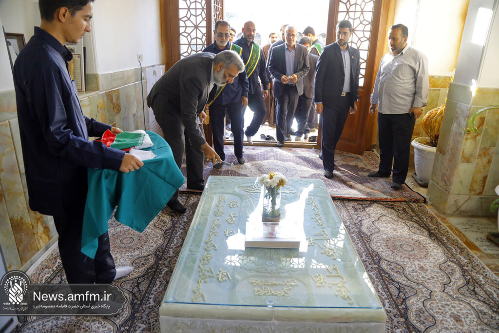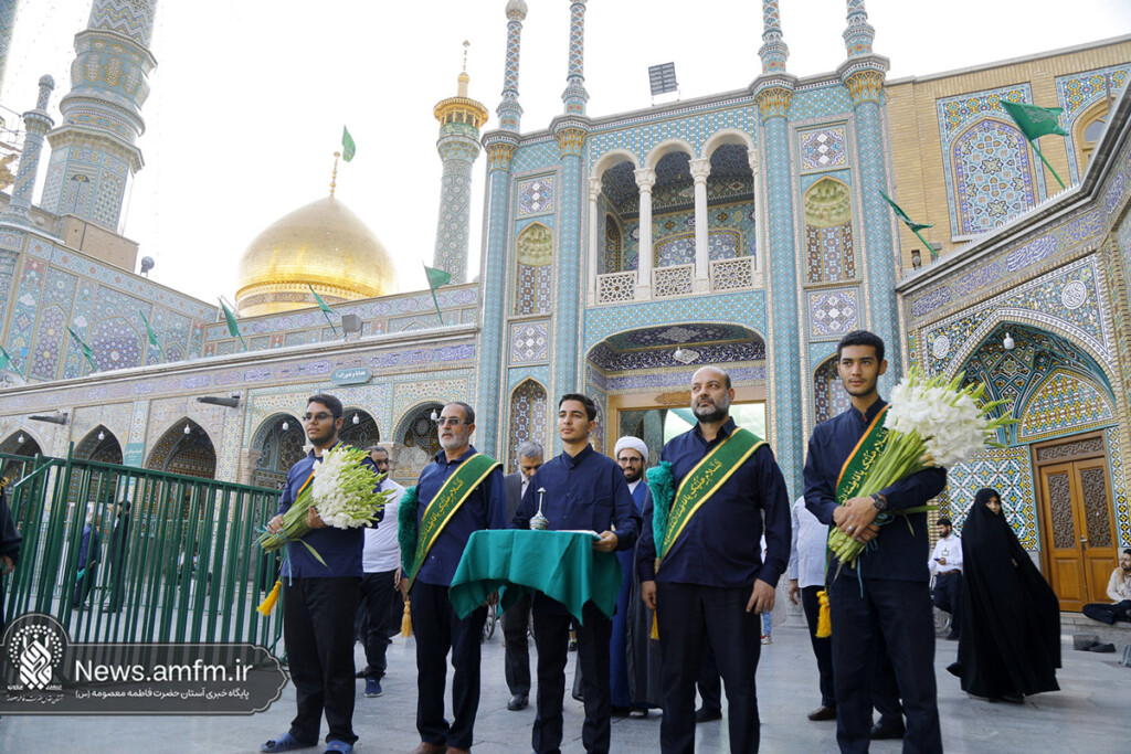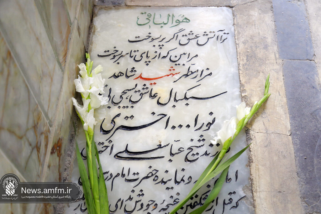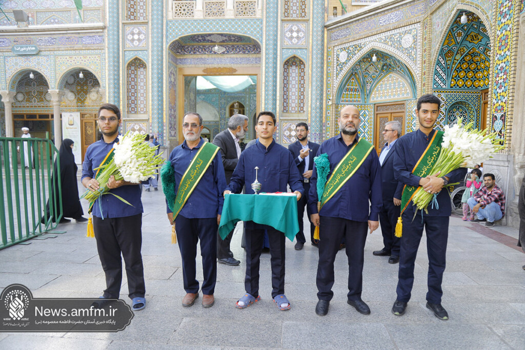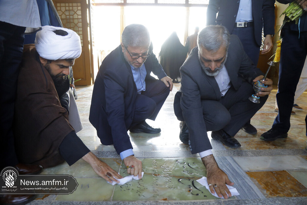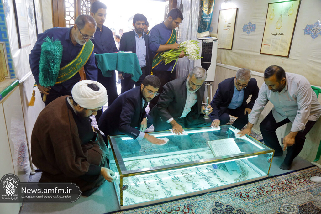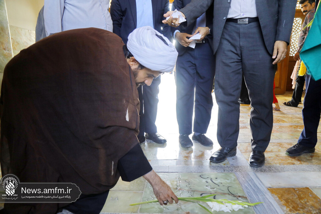 خدام حرم حضرت معصومه سلام الله علیها همزمان با آیین غبارروبی مزار شهدا در سراسر کشور، قبور شهدای مدفون در حرم را عطرافشانی و غبارروبی کردند.