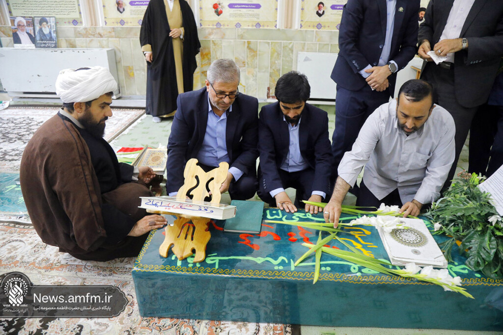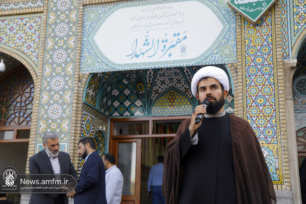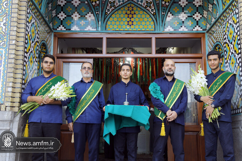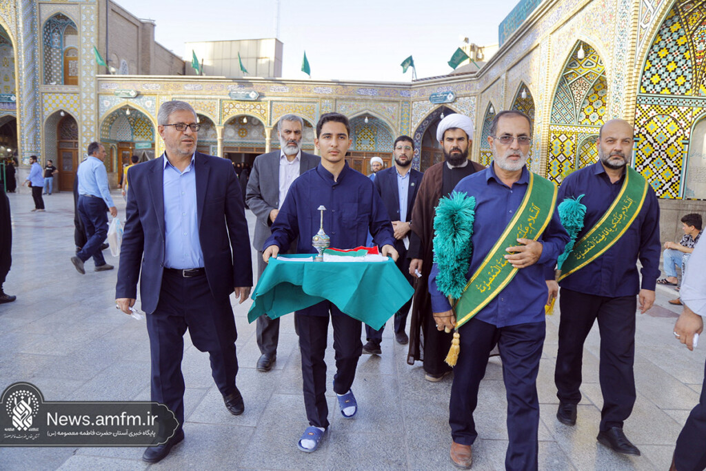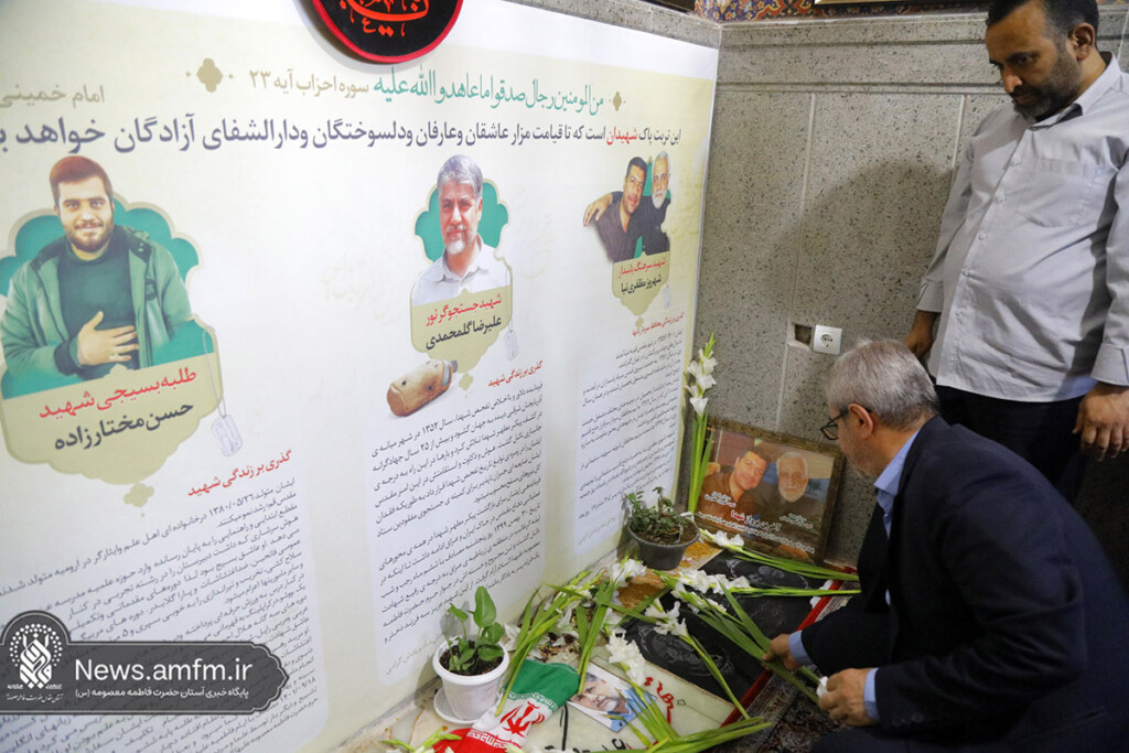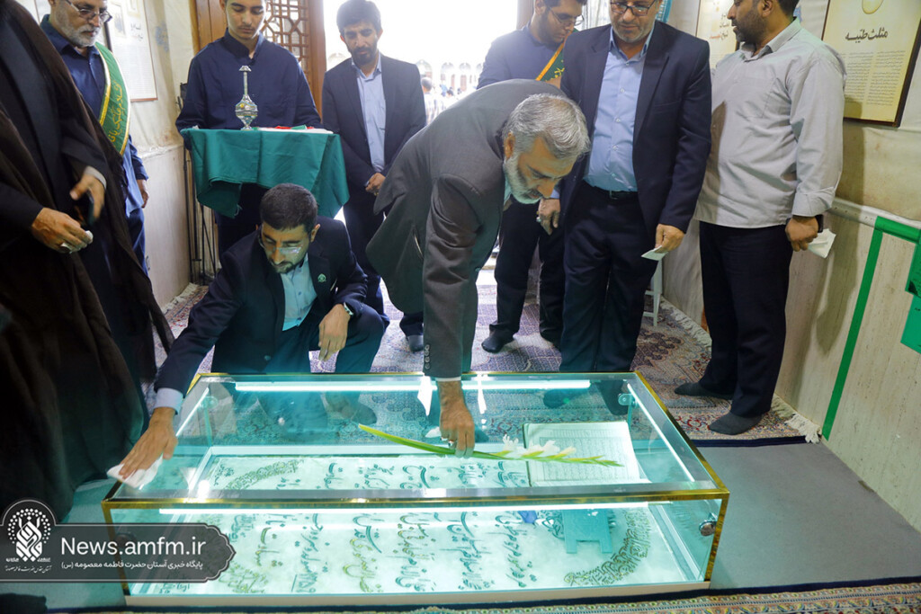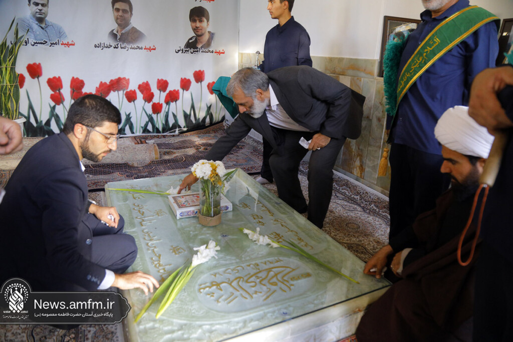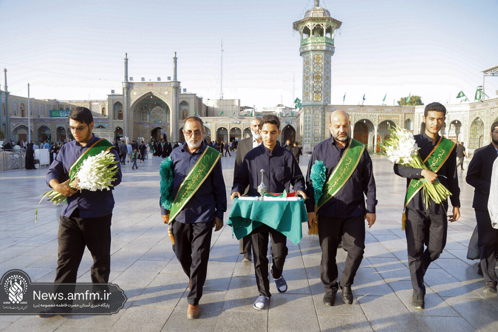 خدام حرم حضرت معصومه سلام الله علیها همزمان با آیین غبارروبی مزار شهدا در سراسر کشور، قبور شهدای مدفون در حرم را عطرافشانی و غبارروبی کردند.
