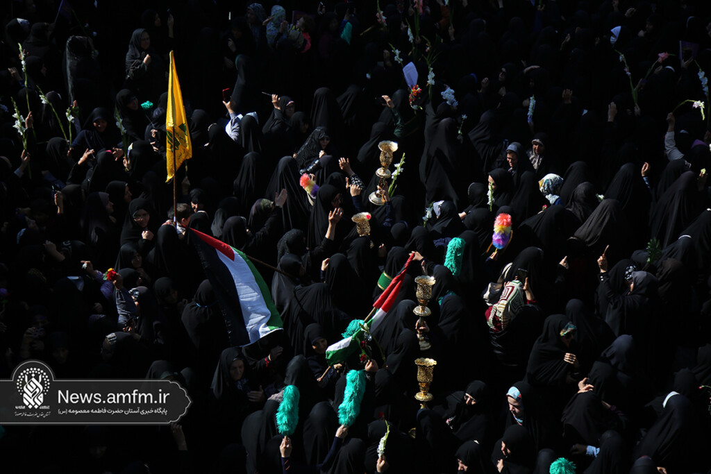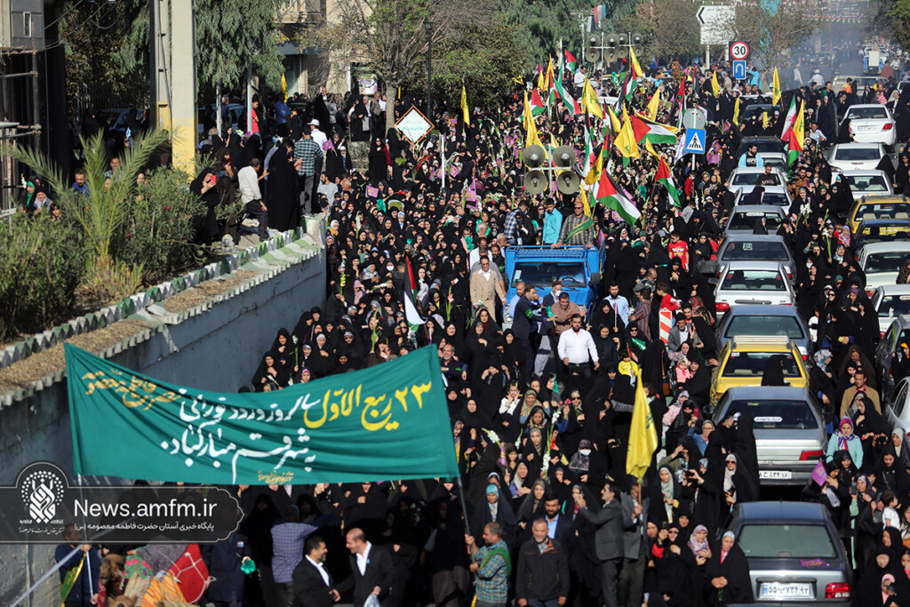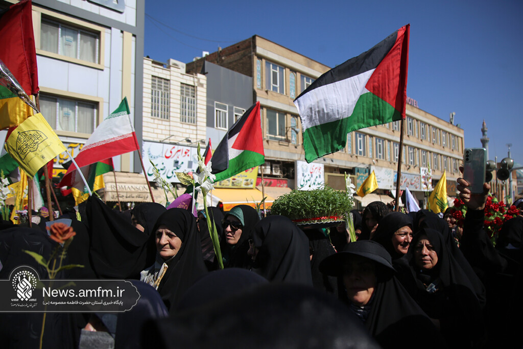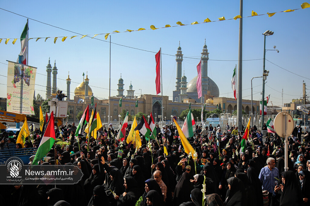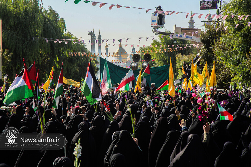 همچنین مردم با دردستداشتن پرچمهای رنگی مزین به نام اهلبیت (ع) و پرچمهای مقاومت و فلسطین شادی خود را از سالروز ورود حضرت معصومه به قم و پیروزی مقاومت فلسطین در برابر دشمنان اسلام نشان دادند.