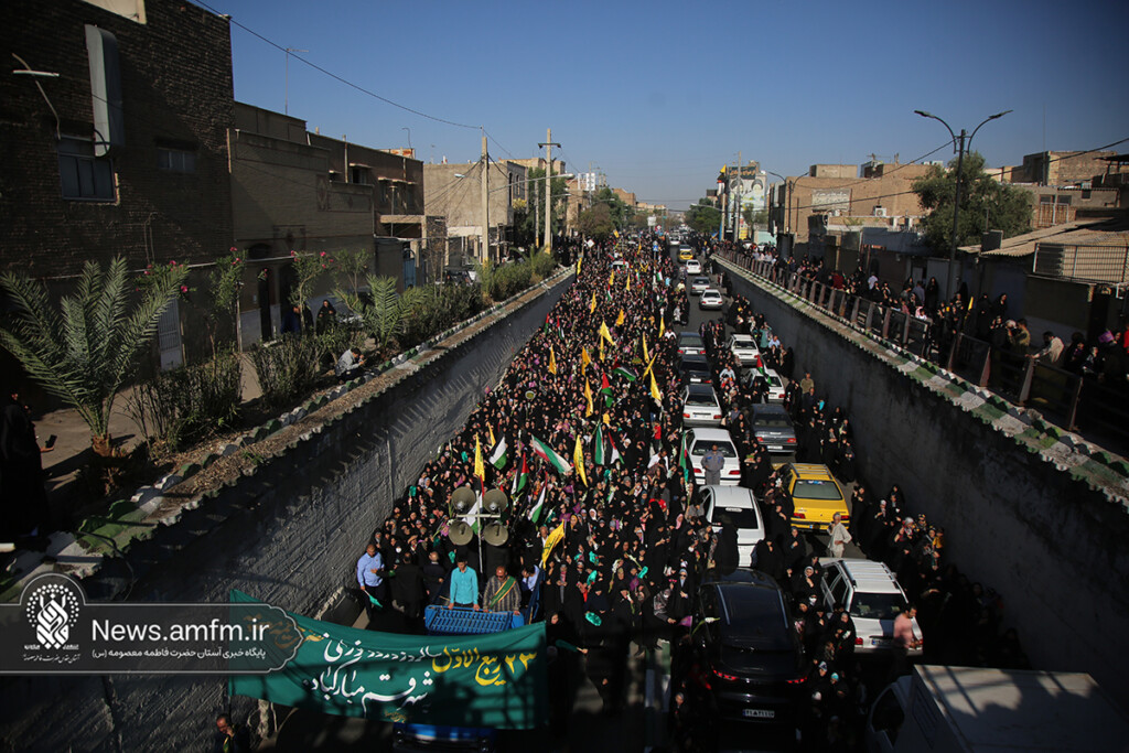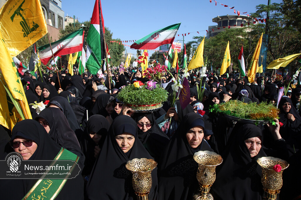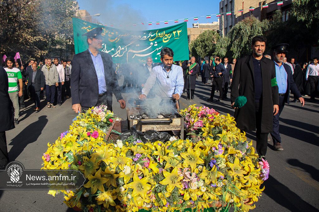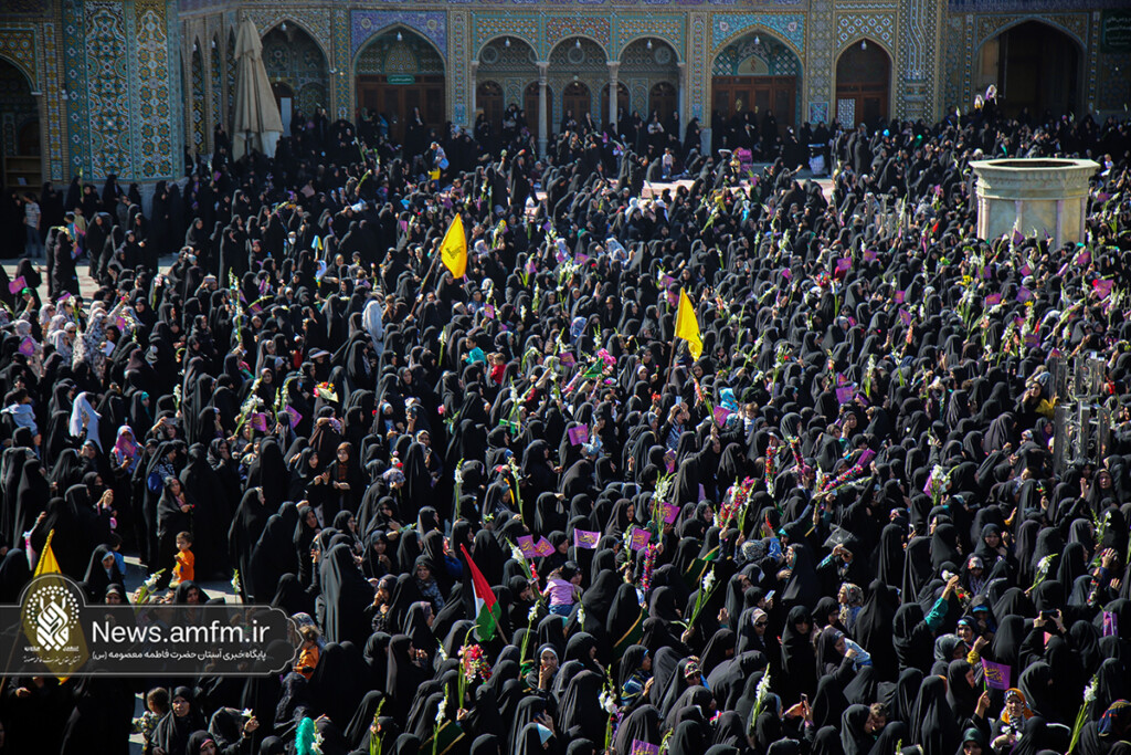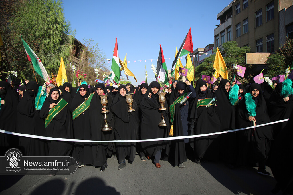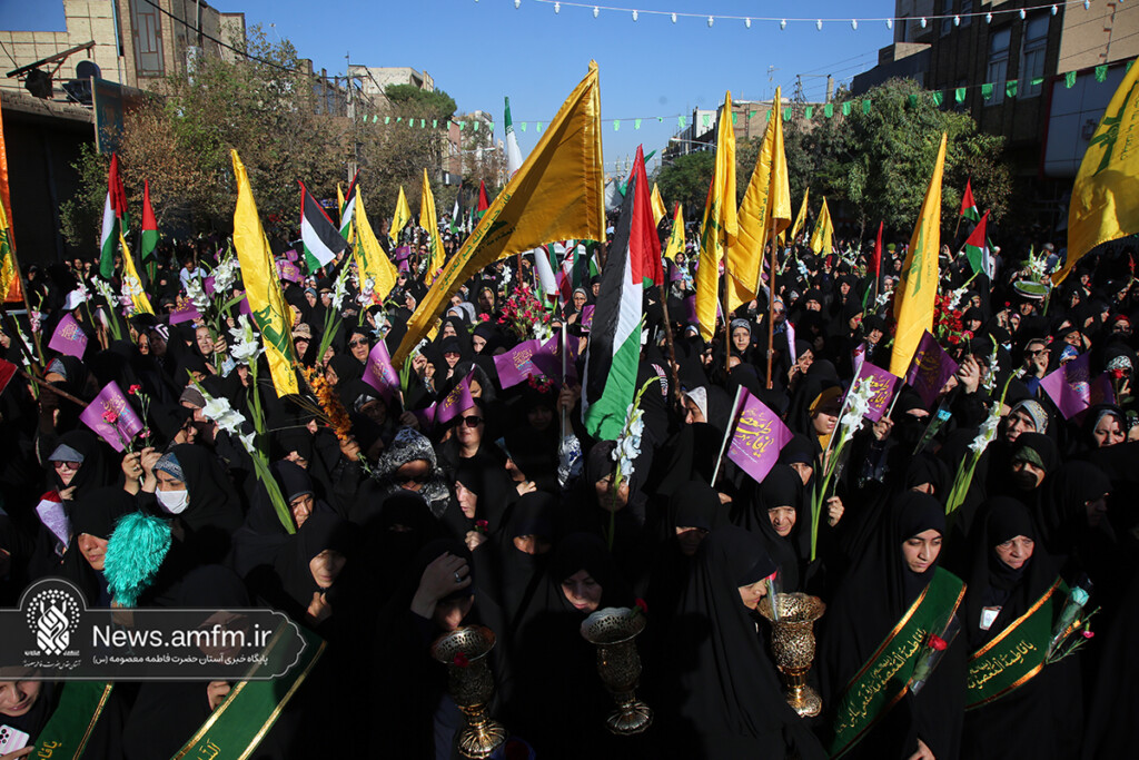 همچنین مردم با دردستداشتن پرچمهای رنگی مزین به نام اهلبیت (ع) و پرچمهای مقاومت و فلسطین شادی خود را از سالروز ورود حضرت معصومه به قم و پیروزی مقاومت فلسطین در برابر دشمنان اسلام نشان دادند.