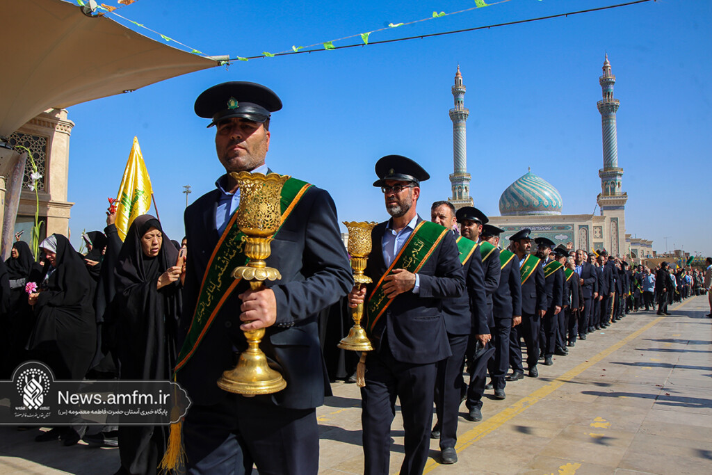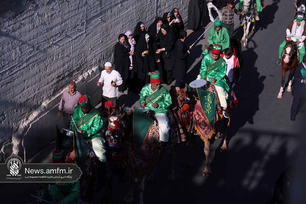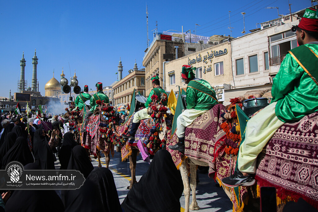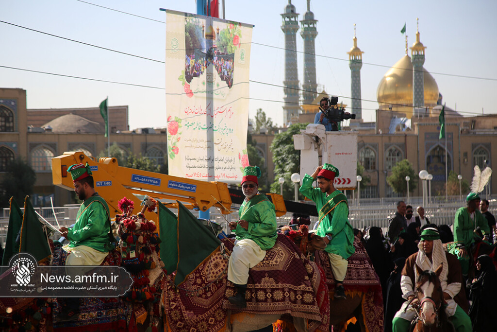 به گزارش پایگاه خبری آستان مقدس حضرت معصومه سلاماللهعلیها، مراسم استقبال از کاروان نمادین ورود حضرت معصومه (س) به شهر مقدس قم صبح امروز با حضور پرشور مردم و خادمان این آستان مقدس از میدان معصومیه قم به سمت حرم مطهر برگزار شد.