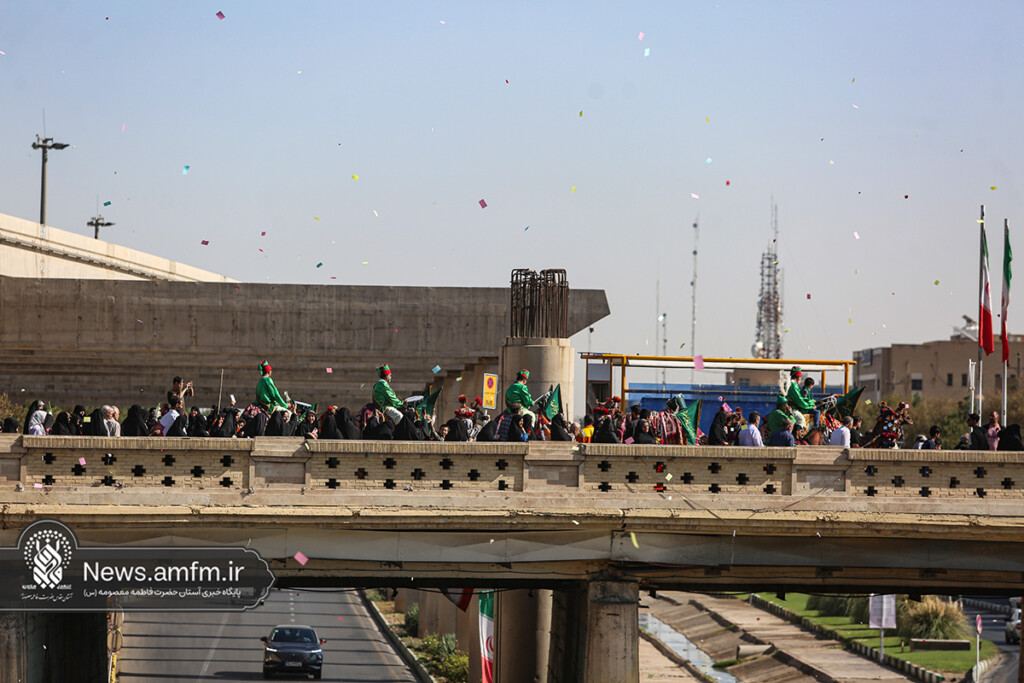 کاروان نمادین در طول مسیر با گلباران و توزیع شیرینی و شربت مورد استقبال مردم و کسبه قرار گرفت و شوروشعف ویژهای به شهر مقدس قم داد.